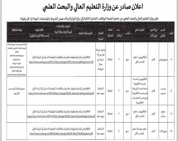 : أعلنت مؤسسات ودوائر حكومية اليوم الخميس، عن حاجتها لتعبئة وظائف شاغرة.