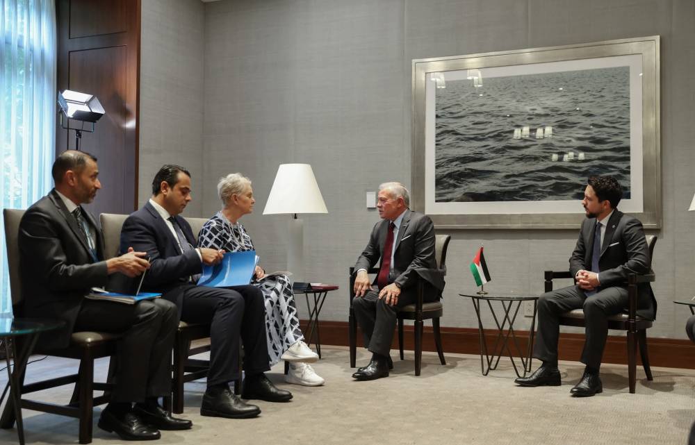 عقد جلالة الملك عبدﷲ الثاني، يوم امس الاحد  لقاءات مع قادة دول ورؤساء منظمات دولية مشاركة في اجتماعات الجمعية العامة للأمم المتحدة في نيويورك، بحضور سمو الأمير الحسين بن عبدﷲ الثاني، ولي العهد.