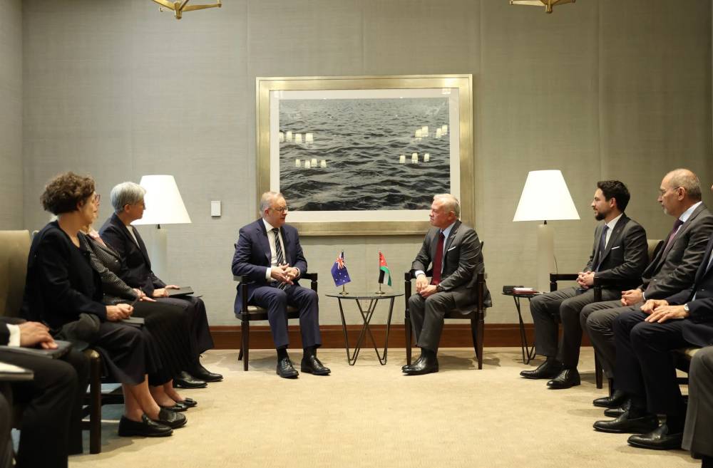 وبحث جلالته، خلال لقاءات مع رئيس النمسا ألكسندر فان دير بيلين، والرئيس البرتغالي مارسيلو ريبيلو دي سوزا، ورئيس وزراء أستراليا آنتوني ألبانيزي، أبرز التطورات في المنطقة، لا سيما تلك المتعلقة بالقضية الفلسطينية.