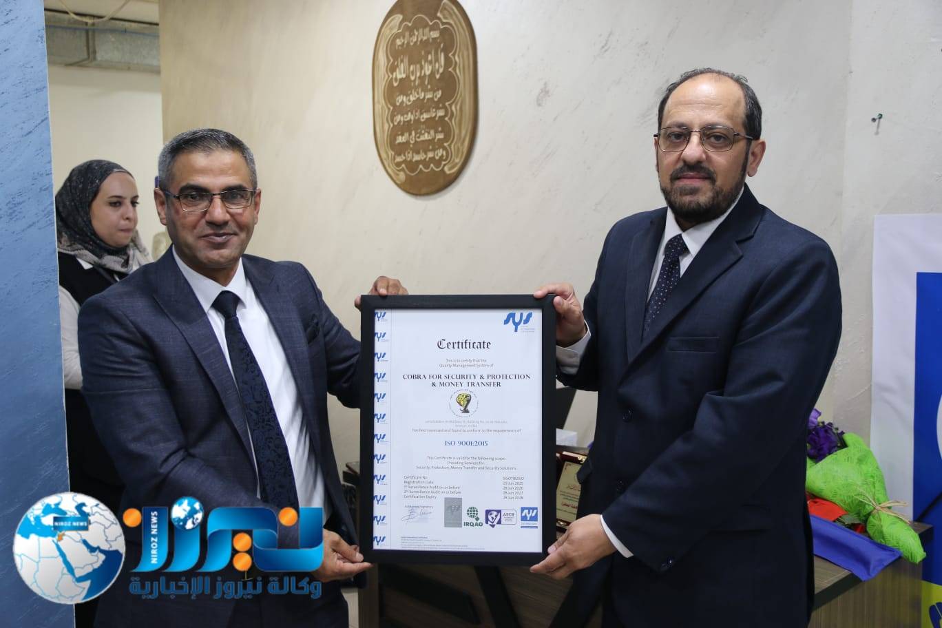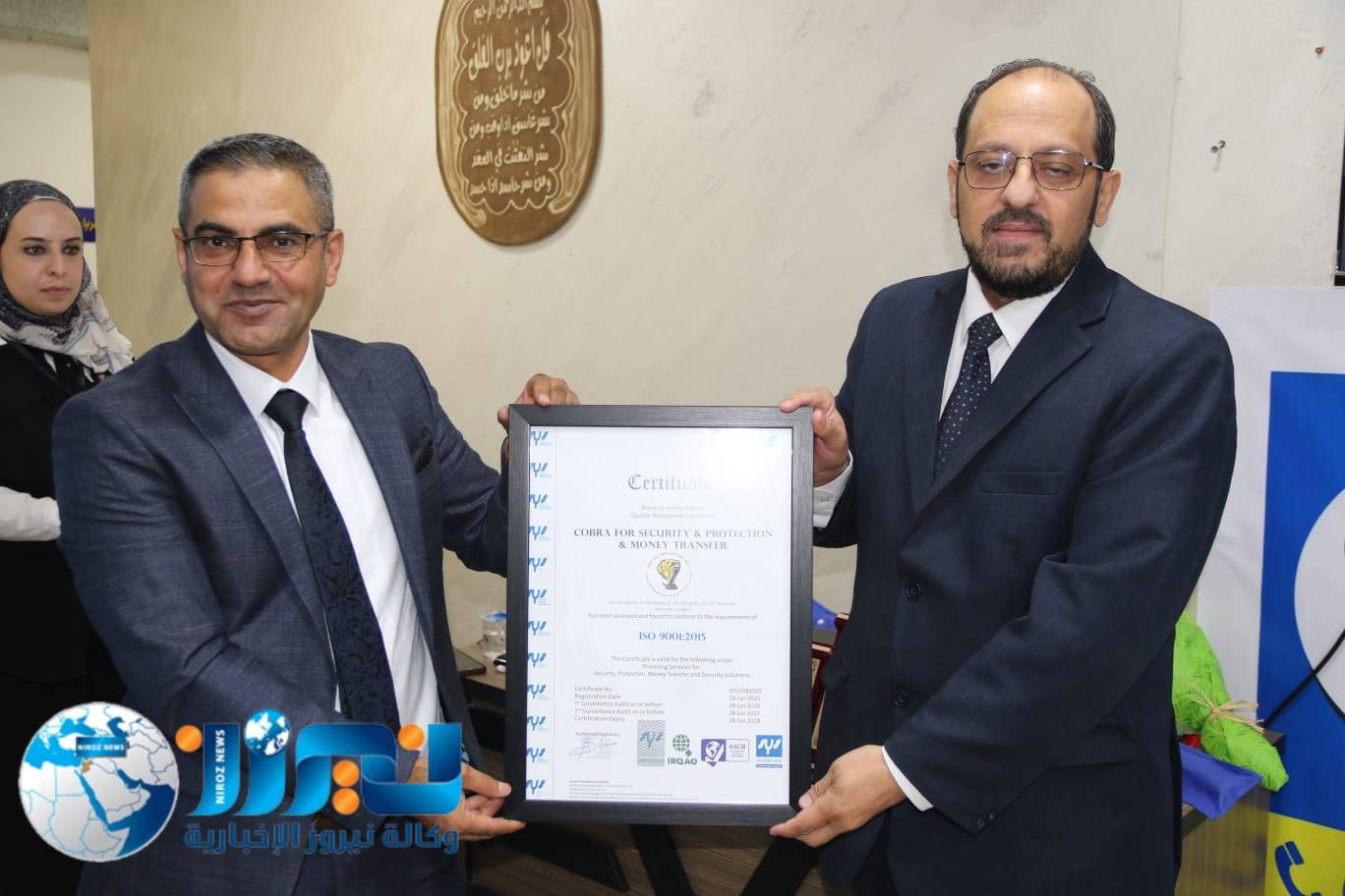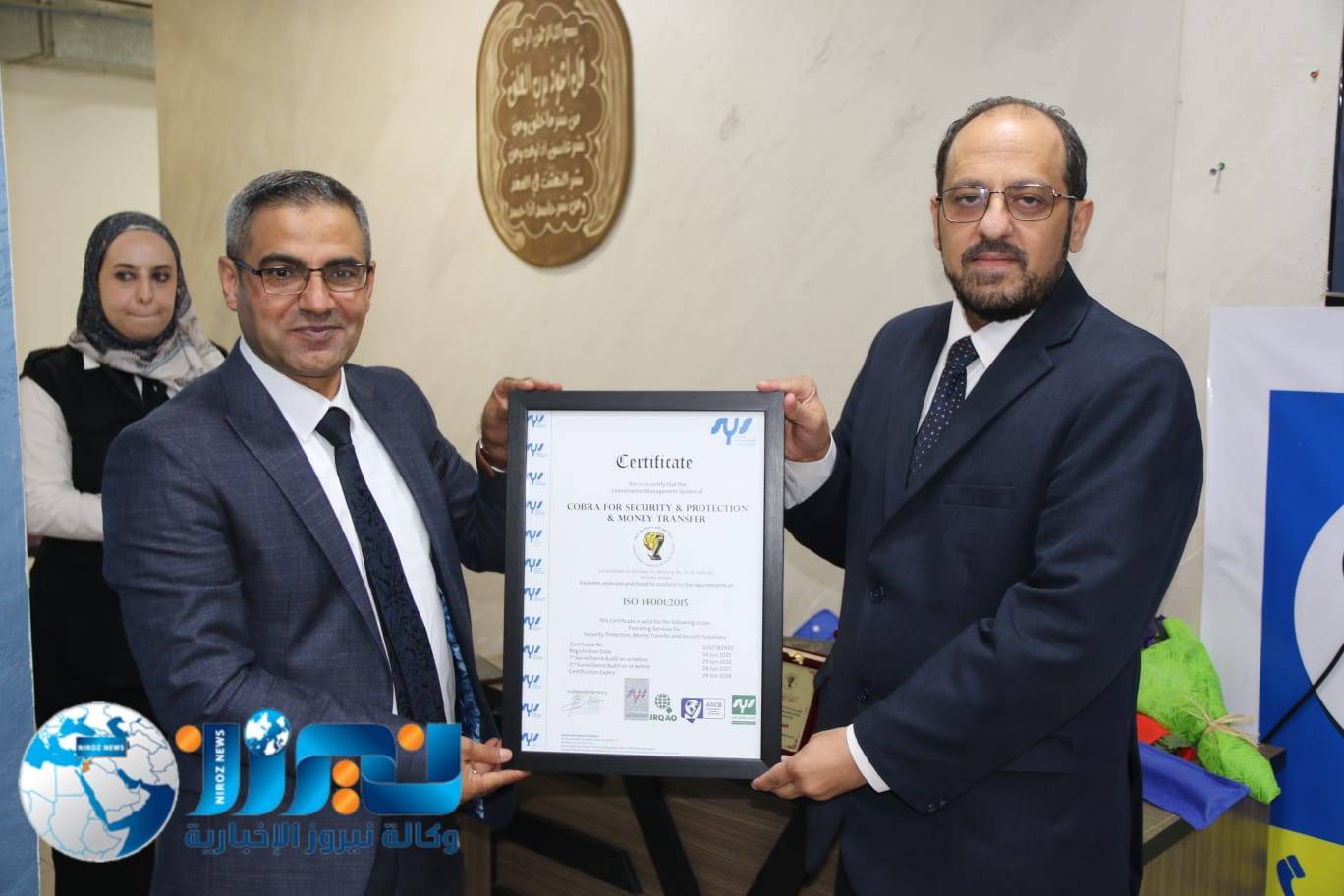 تحت رعاية الرئيس التنفيذي لشركة يوكاليبتوس العالمية لاستشارات الجودة، د. نور شحادة، أقامت شركة الكوبرا للأمن والحماية حفلاً رسمياً بمناسبة حصولها على شهادات الأيزو 9001 (نظام إدارة الجودة)، و45001 (نظام إدارة السلامة والصحة المهنية)، و14001 (نظام إدارة البيئة)، بحضور نخبة من الضيوف وكبار المسؤولين وعملاء الشركة.