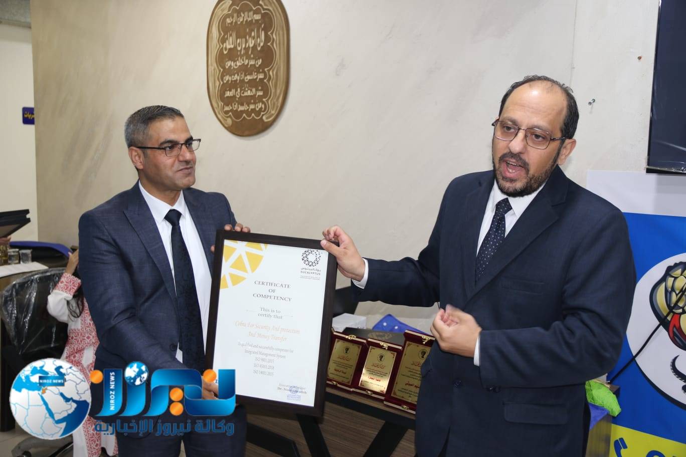 وفي الختام، قام د. نور شحادة بتسليم شهادات الأيزو للمقدم المتقاعد رياض العبادي وكبار مسؤولي الشركة، إلى جانب تكريم عدد من الكوادر المتميزة. كما التقطت الصور التذكارية، واختتم الحفل ببوفيه مفتوح للحضور.