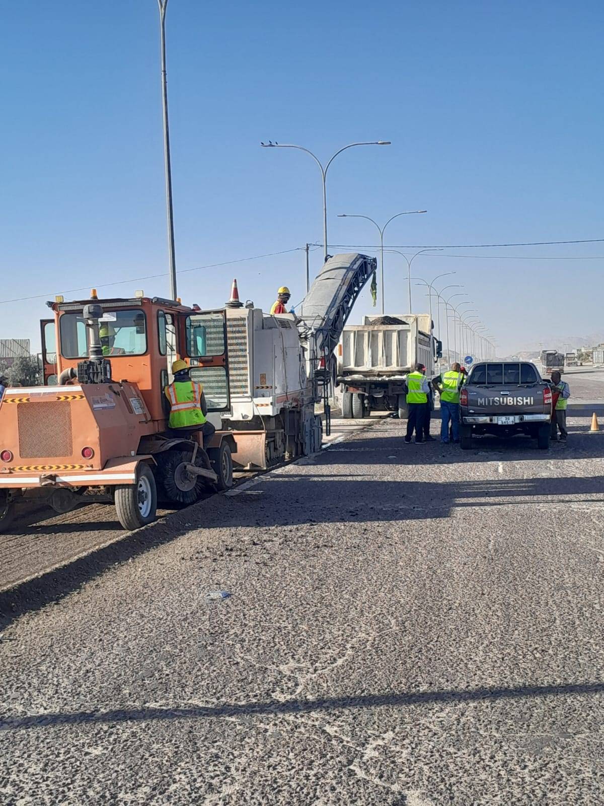 أعلنت وزارة الأشغال العامة والإسكان عن بدء العمل في مشروع صيانة وتحسين الطريق الصحراوي، في الجزء الممتد من منطقة الحميمة ولغاية القويرة، بطول إجمالي يبلغ 25 كيلومتراً للاتجاهين (12.5 كلم لكل اتجاه)، وذلك ضمن جهودها المستمرة لتأهيل أهم الطرق الحيوية في المملكة.