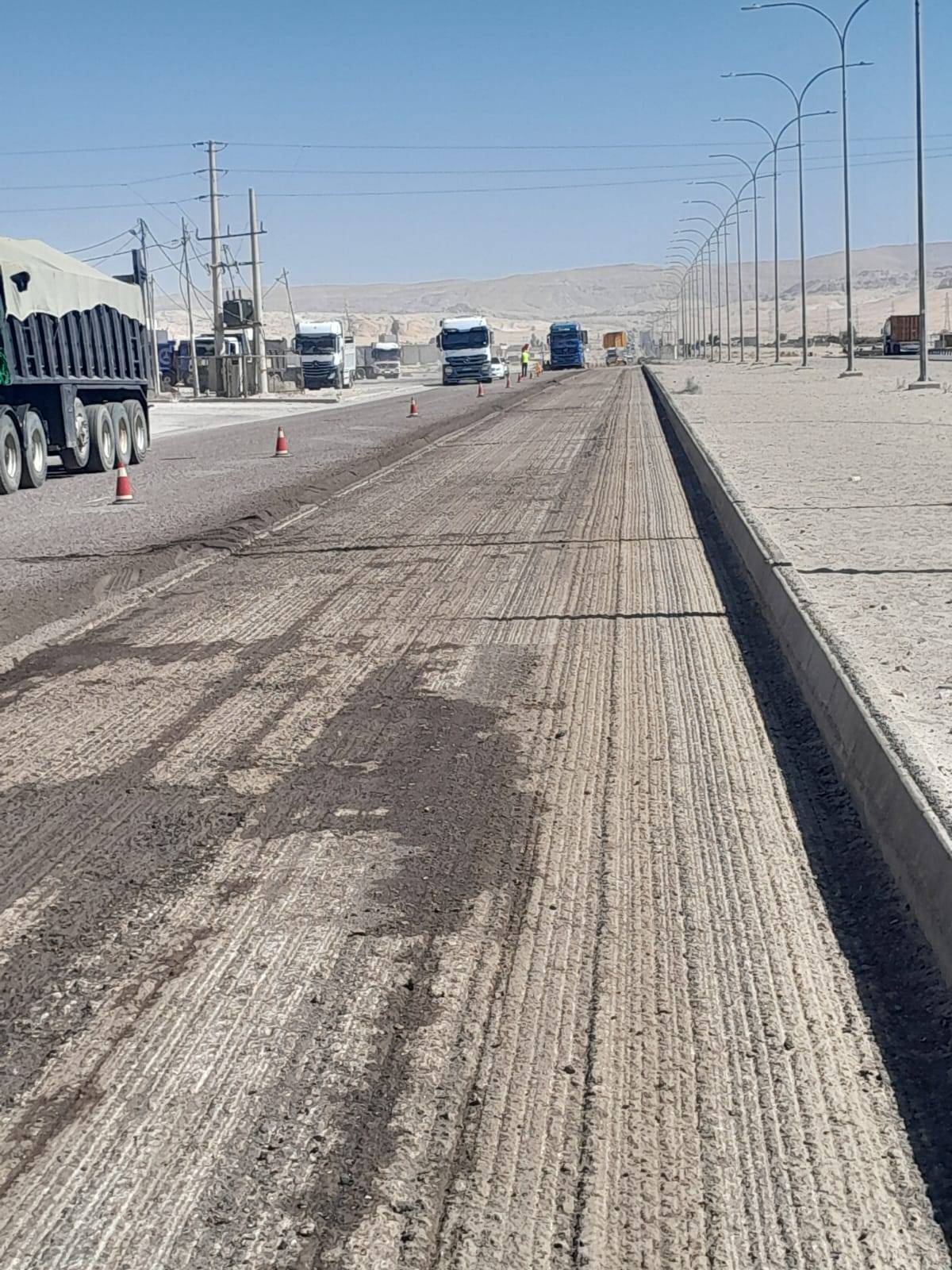 وأكد أبو السمن أن الوزارة تضع صيانة الطريق الصحراوي على سلم أولوياتها، بهدف ضمان ديمومة الطريق ورفع مستوى السلامة المرورية عليه، مشيراً إلى أن العمل يشمل إزالة وكشط الطبقة الإسفلتية القائمة، وفرش خلطة إسفلتية جديدة، بالإضافة إلى تنفيذ أعمال التأثيث والسلامة المرورية، مثل دهان الطرق باللونين الأبيض والأصفر، وتركيب العواكس الأرضية.