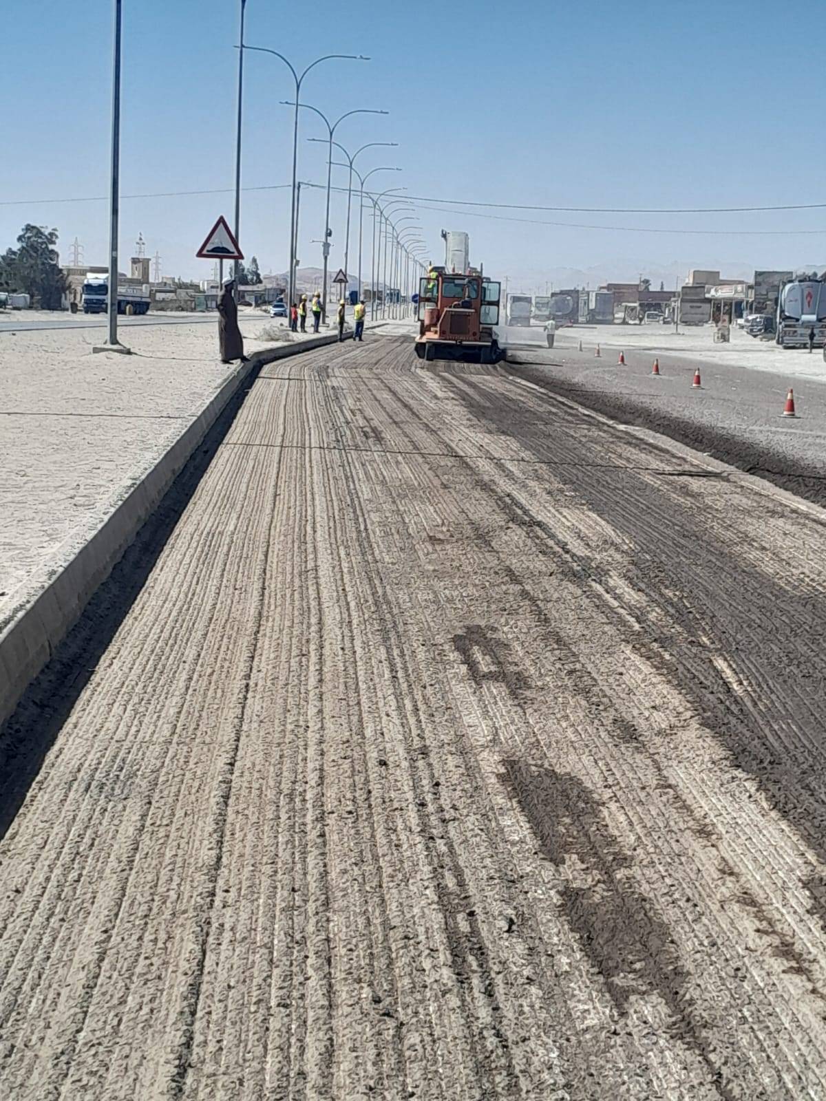 وزارة الأشغال تبدأ تنفيذ مشروعا لصيانة وتحسين الطريق الصحراوي بين الحميمة والقويرة...صور