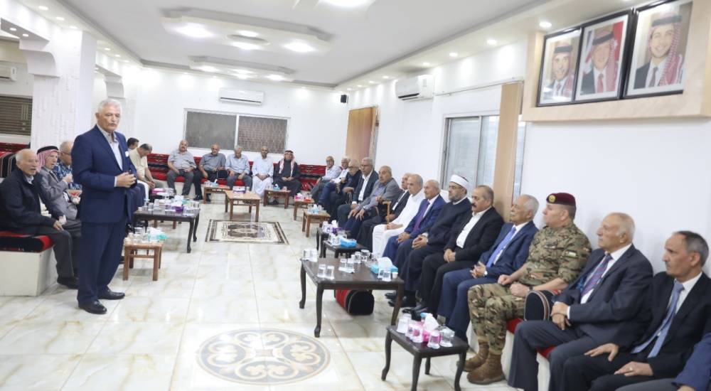 *وفي منطقة دير أبي سعيد، بلواء الكورة، بمحافظة إربد*، نقل العيسوي، خلال زيارته بيت عزاء المرحوم الحاج راكان عبدالمجيد كليب الشريدة، تعازي ومواساة جلالة الملك وسمو ولي العهد إلى ذوي الفقيد وعموم عشيرة الشريدة، سائلا المولي عز وجل أن يتغمده بواسع رحمته.