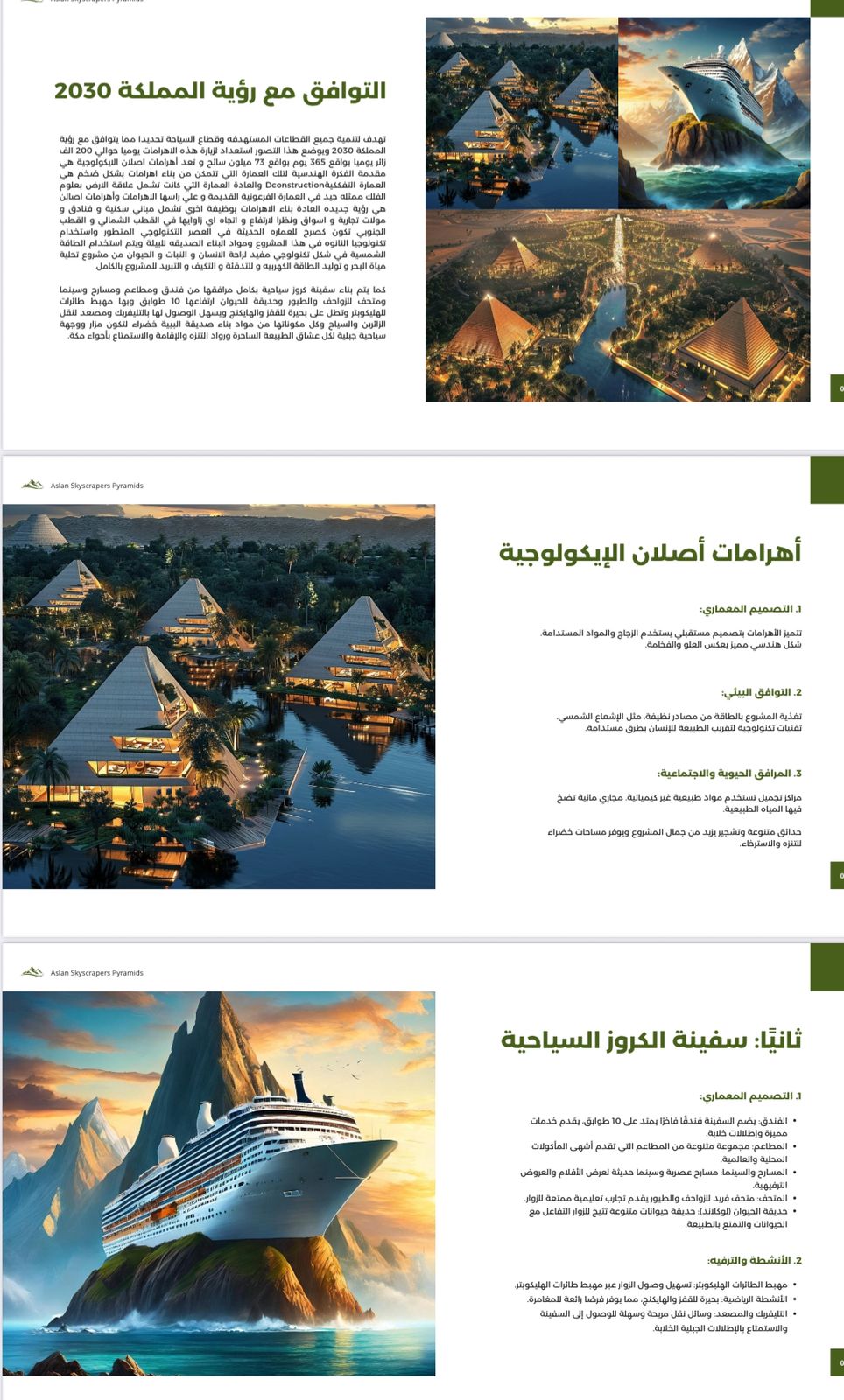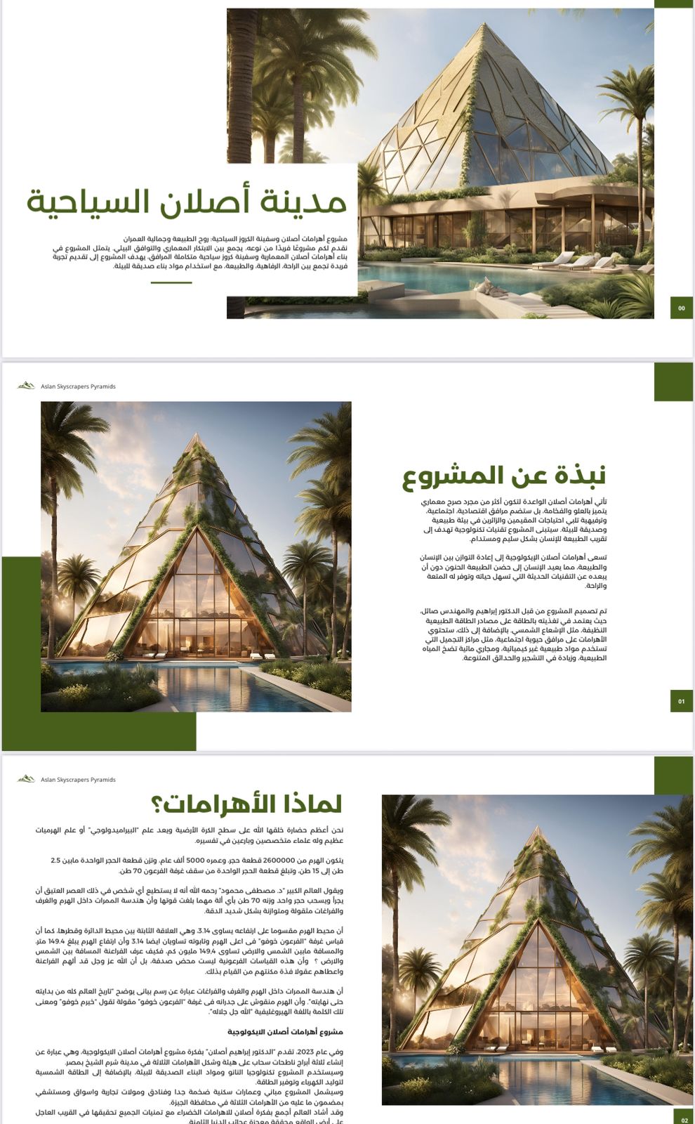 المشروع، الذي أطلق عليه اسم "مدينة أَصْلان السياحية”، يدمج بين عظمة الأهرامات المصرية القديمة والحداثة المعمارية في ثوب عصري صديق للبيئة، ليصبح علامة فارقة على خريطة الوجهات السياحية العالمية.