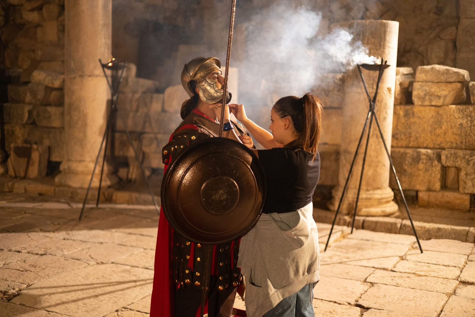 شاركَ في الأداءِ التّمثيليّ عددٌ من أبناءِ الكنيسة الأرثوذكسية إلى جانب فرقٍ فنّيّةٍ متخصّصة، فأبدعوا في إحياءِ أجواءِ الحقبةِ الرّومانيّةِ وإبرازِ معاني الإيمانِ والصّمود عبرَ مشاهدَ بصريّةٍ إبداعيّة. كما ساهمتْ فرقٌ مختصّةٌ بتصميمِ الدّيكور، والملابسِ التاريخيّة، والأكسسوارات، والتّصويرِ والإضاءةِ في إعادةِ بناءِ المشهدِ التاريخي بدقّةٍ وإبداع، ما أضفى على العملِ طابعًا فنّيًّا متكاملًا يليقُ بقيمةِ هذا الموقعِ المقدّس.
