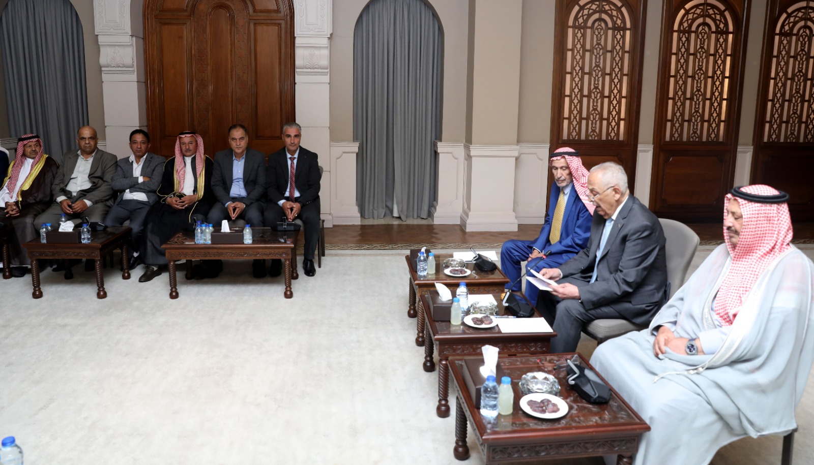 العيسوي خلال لقائه وفدا من عشائر بئر السبع وممثلين عن جمعية الرواد للفنون التشكيلي
