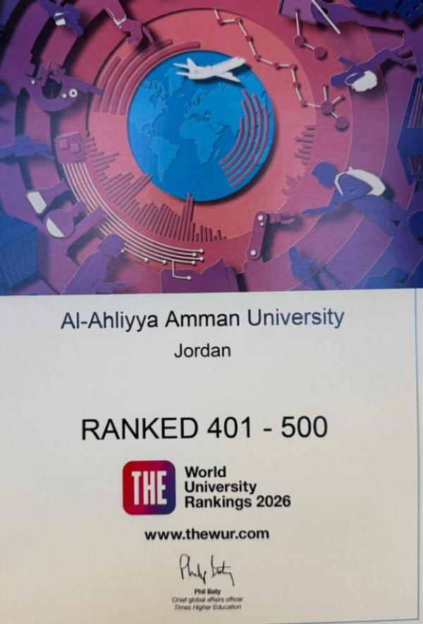 عمان الأهلية تفوز بالمركز الأول على الجامعات الأردنية و 401 -500 عالمياً بتصنيف التايمز العالمي لعام 2026