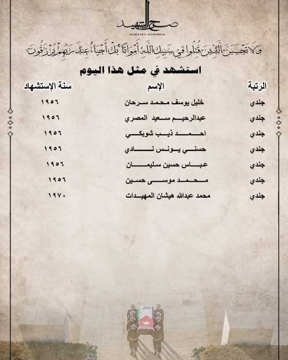 يظل صرح الشهيد شاهدًا خالدًا على عظمة التضحيات التي قدمها أبناء الأردن، الذين ارتقوا دفاعًا عن الوطن وحماية لترابه الطهور.