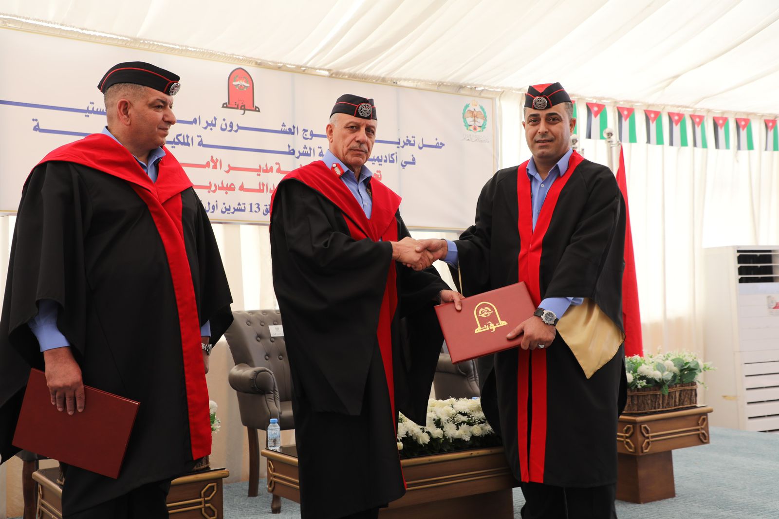 رعى مدير الأمن العام، اللواء الدكتور عبيد الله المعايطة، اليوم الاثنين، حفل تخريج الفوج العشرين لطلبة برنامج الماجستير في أكاديمية الشرطة الملكية، الذي ينفّذ بالتعاون مع جامعة مؤتة في عدد من التخصّصات النوعية.