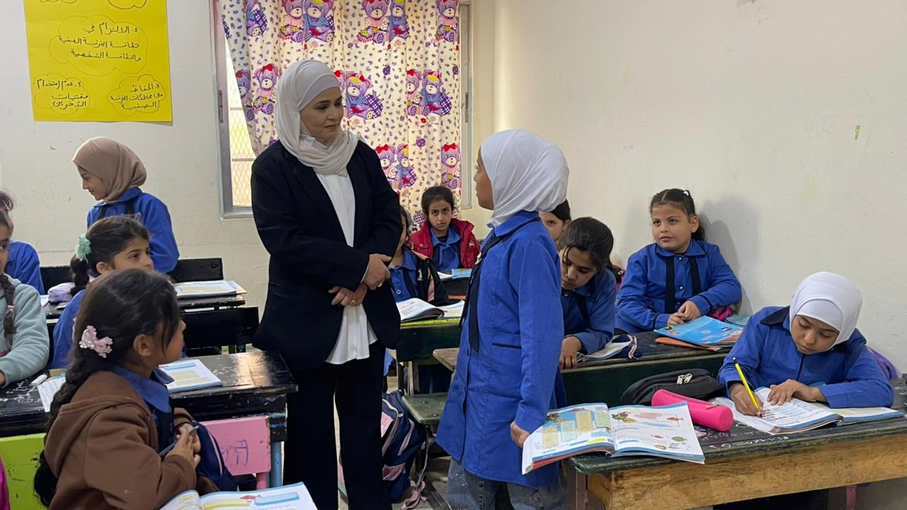 وشاركت الخريشا الطالبات جانبا من المواقف الصفية للتعرف على المستوى التحصيلي لهن، وأكدت على أهمية الاستمرار في تطبيق البرنامج الوطني للتدخلات العلاجية ،وتنمية مهارات القراءة والكتابة والحساب.