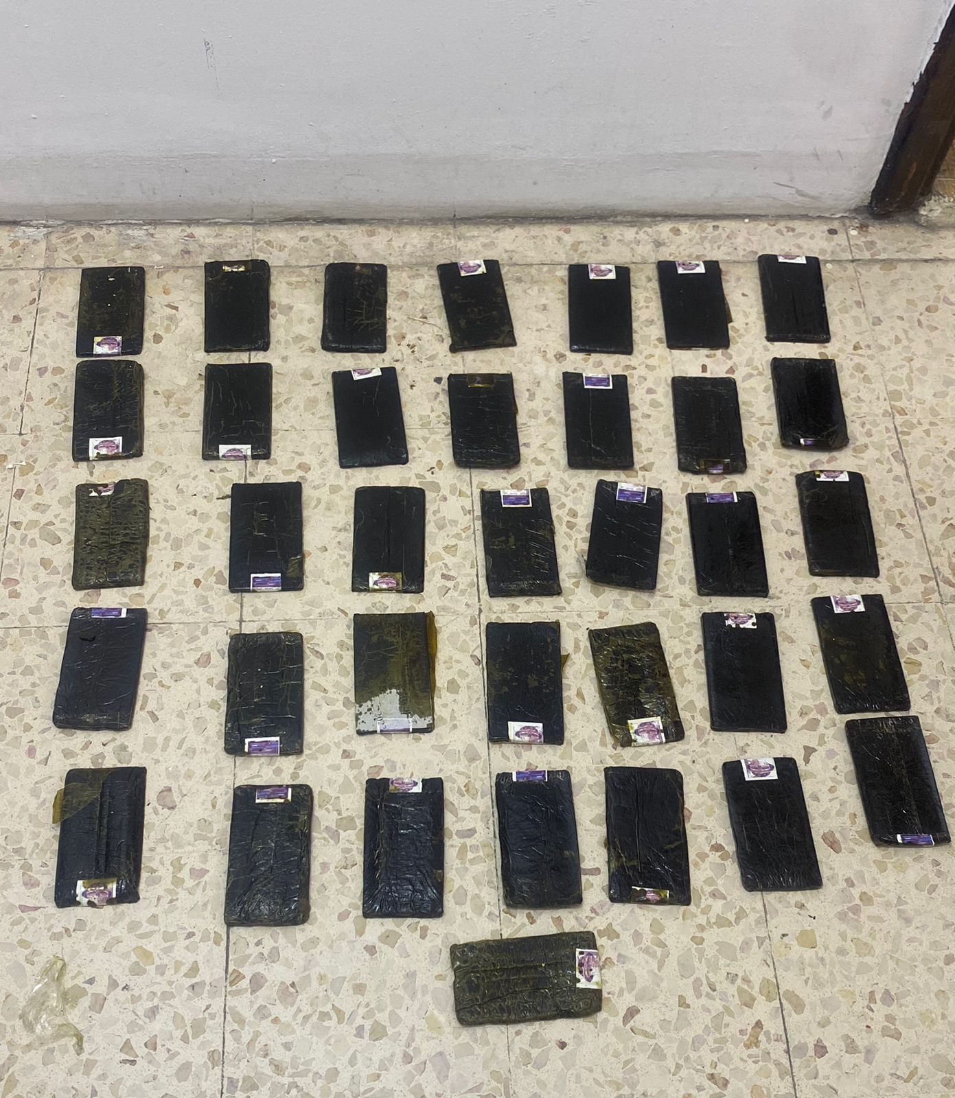 وفي محافظة العقبة وبعد جمع المعلومات حول تاجر للمخدرات والتاكد من قيامه بحيازة وتخزين كمية كبيرة من المواد المخدرة تمت مداهمته والقاء القبض عليه، وبالتحقيق معه جرى تحديد مكان إخفاء المواد المخدرة في منطقة صخرية وعرة وبتمشيط المنطقة جرى ضبط 36 كف حشيش قام باخفاءها هناك .