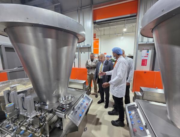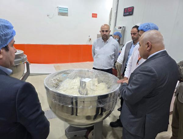 واستمع الوزير من مدير الموارد البشرية في شركة الولاء لخدمات الإعاشة عدنان السيوف حول آلية عمل الفرع الإنتاجي المتخصص بإنتاج المواد الغذائية الذي تصل مساحته إلى 3650 م2 ويقوم بتشغيل أبناء المنطقة.