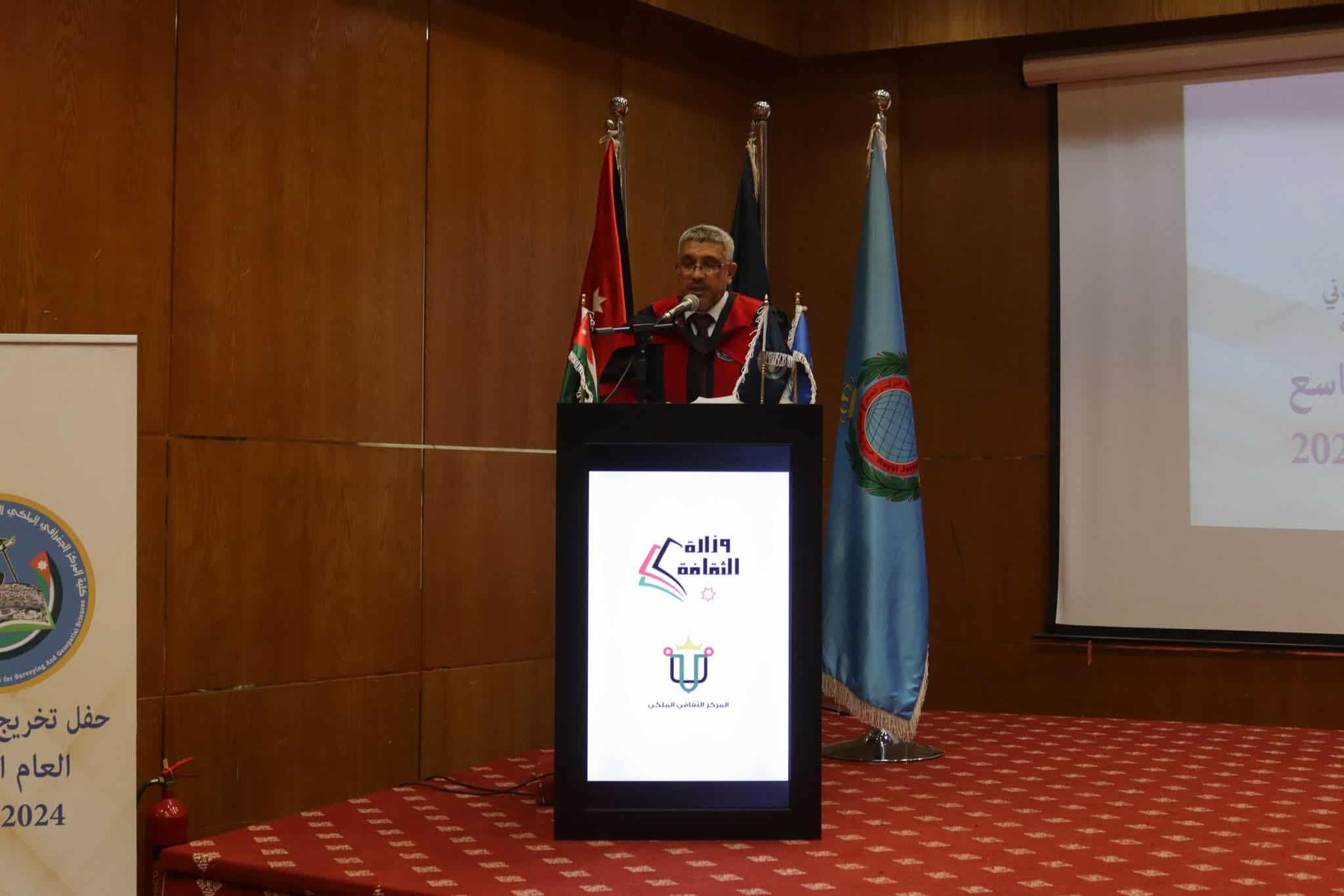 رعى  مدير عام المركز الجغرافي الملكي الأردني العميد المهندس معمر كامل حدادين، حفل تخريج الفوج التاسع من طلبة كلية المركز الجغرافي الملكي الأردني للعلوم المساحية والجيومكانية،  الذي اقيم يوم امس الخميس، في المركز الثقافي الملكي.
