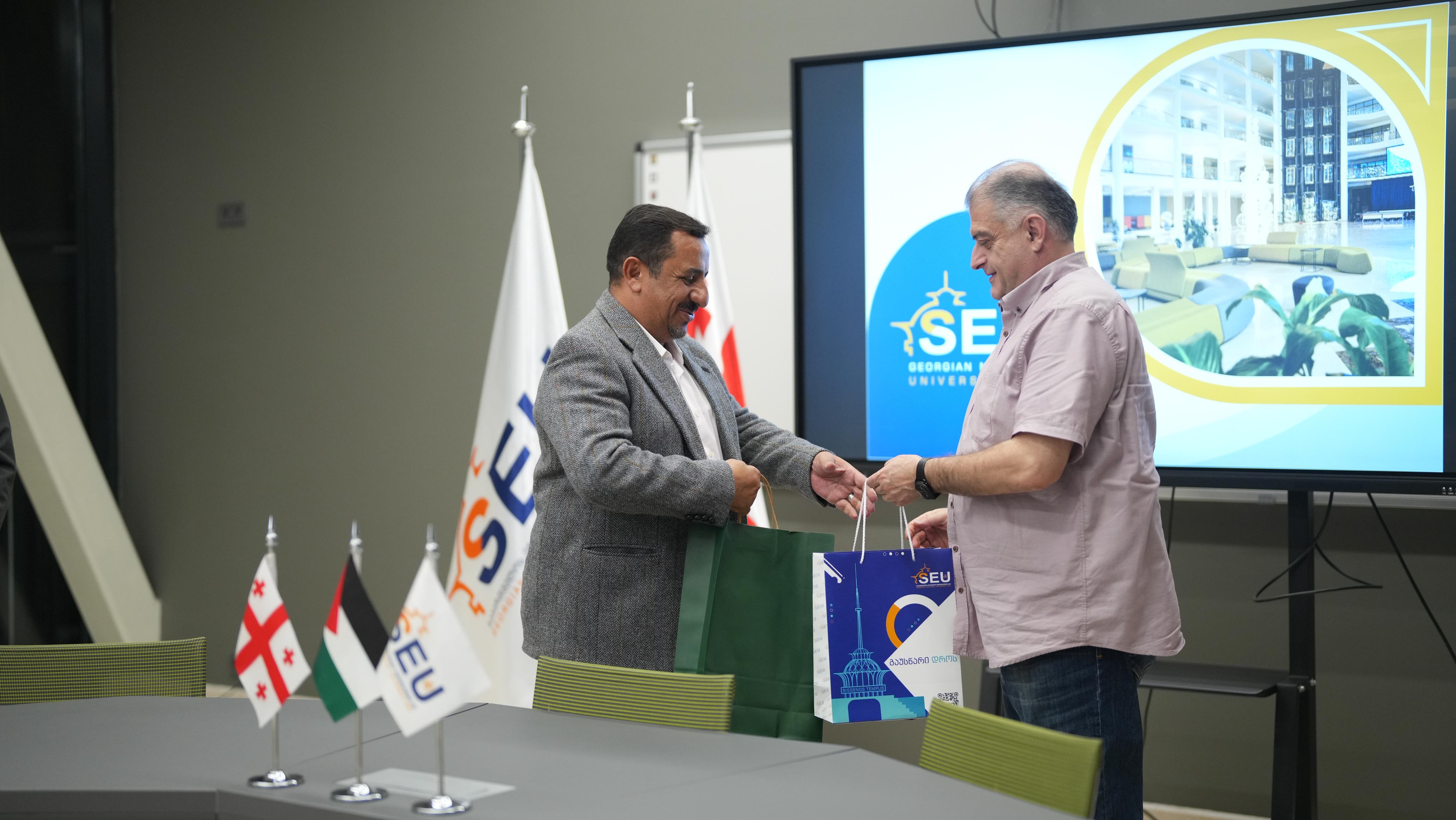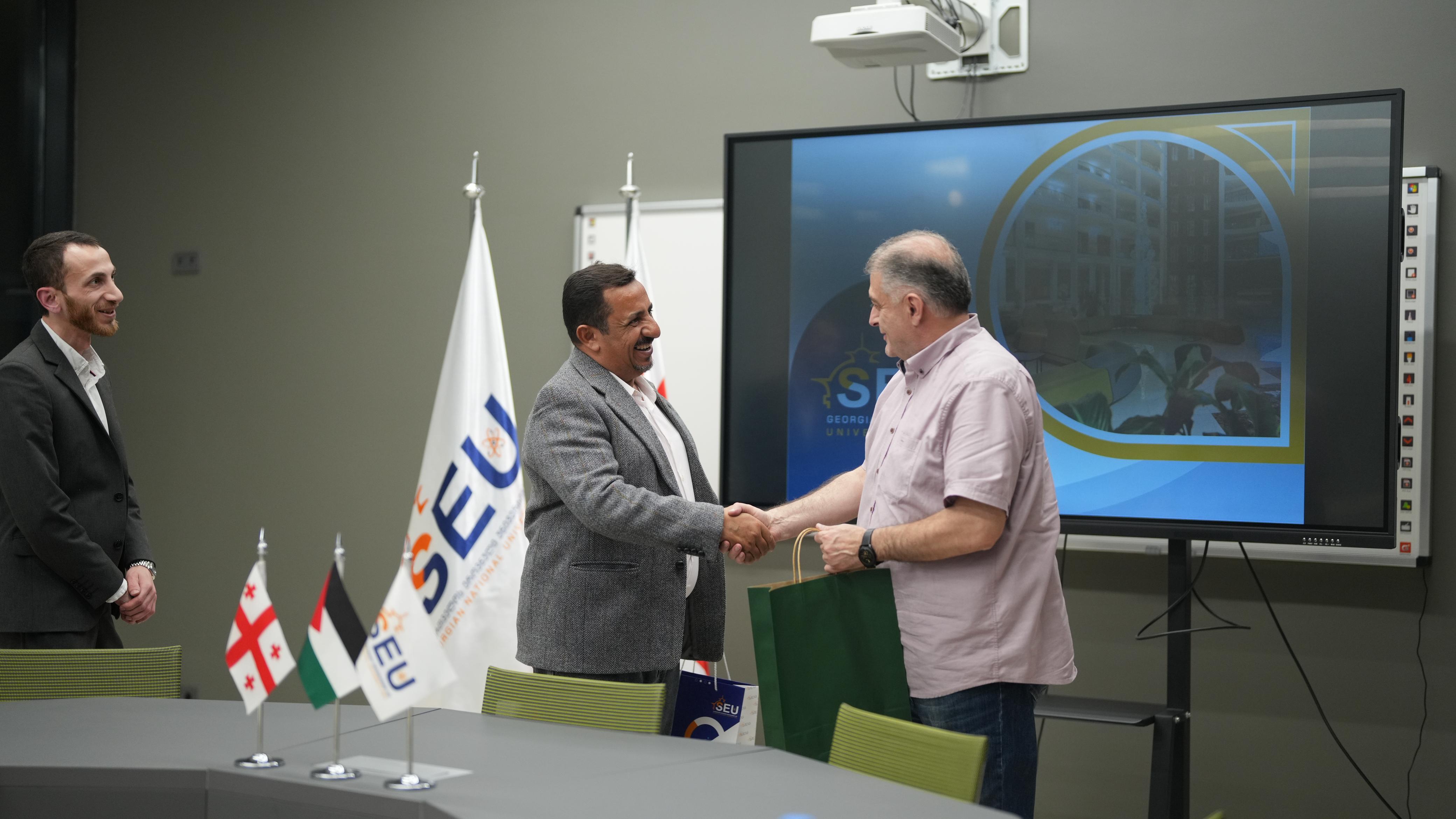 وجرى الاستقبال من قبل نائب رئيس الجامعة السيد George Gavtadze، بحضور الدكتور سليمان خرابشة، الممثل الحصري للجامعة في المملكة الأردنية الهاشمية، والذي قام بتنسيق الزيارة وتنظيم جولتهم التعريفية داخل الجامعة.