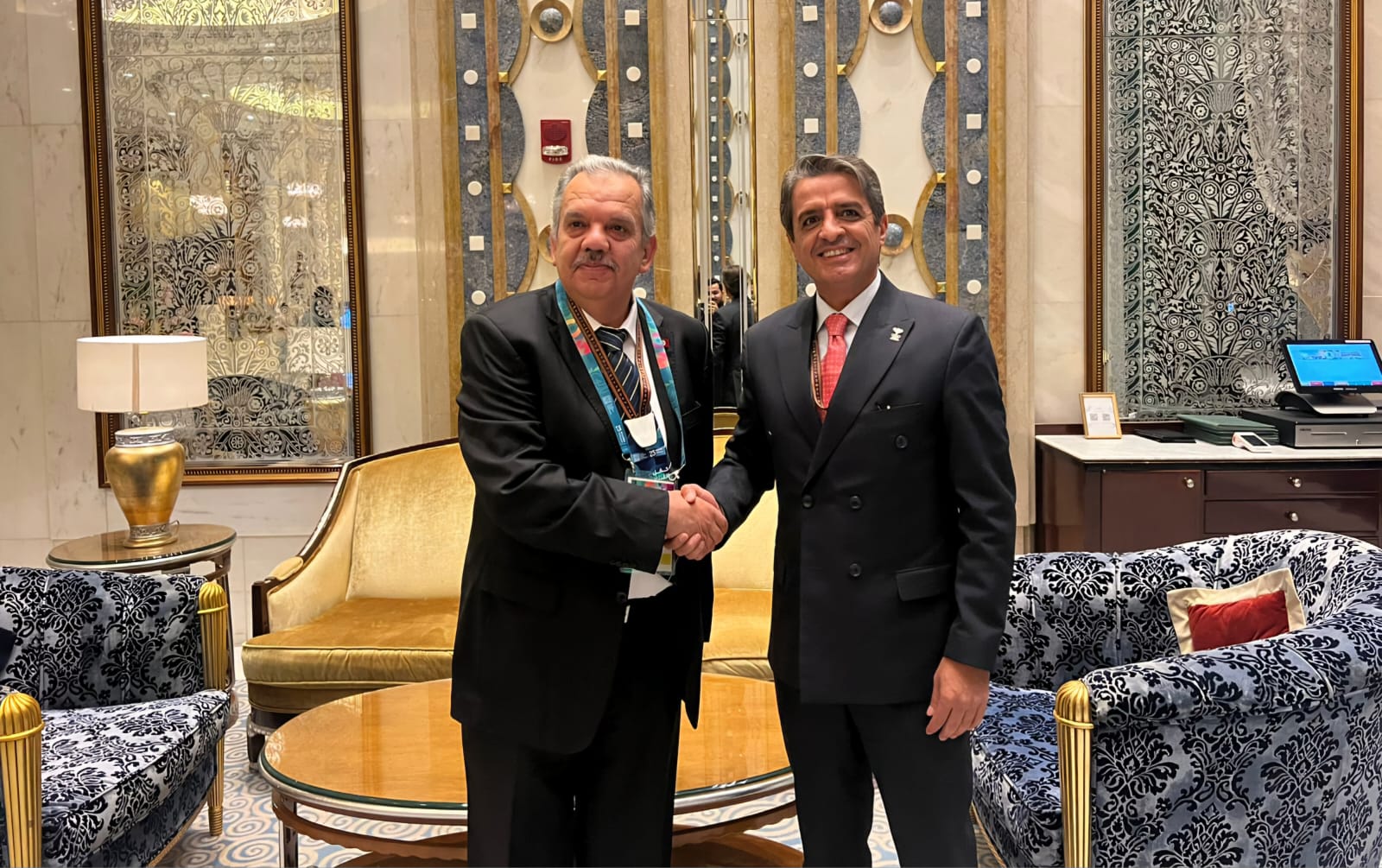 وعلى هامش الحفل، التقى العدوان عدداً من وزراء الشباب والرياضة العرب، وبحث معهم سبل تعزيز التعاون الشبابي والرياضي المشترك، حيث شملت اللقاءات وزراء من مصر وسوريا واليمن والجزائر وتونس وتشاد ونيجيريا.