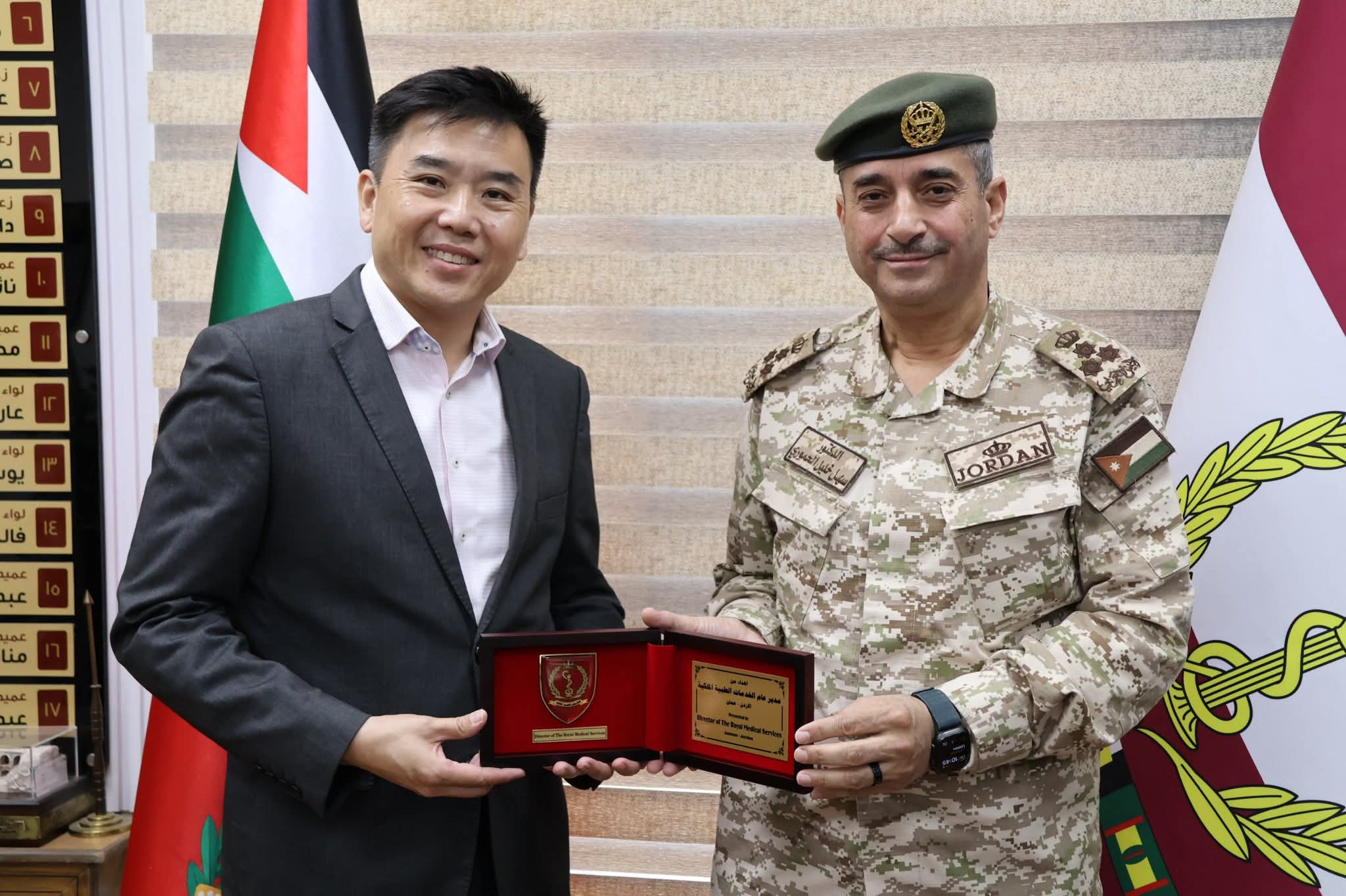 استقبل مدير عام الخدمات الطبية الملكية العميد الطبيب سهل الحموري في مكتبه، اليوم الأحد، وفد طبي من جمهورية سنغافورة الصديقة.