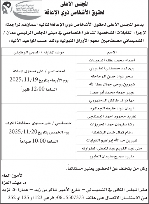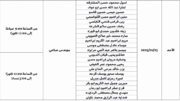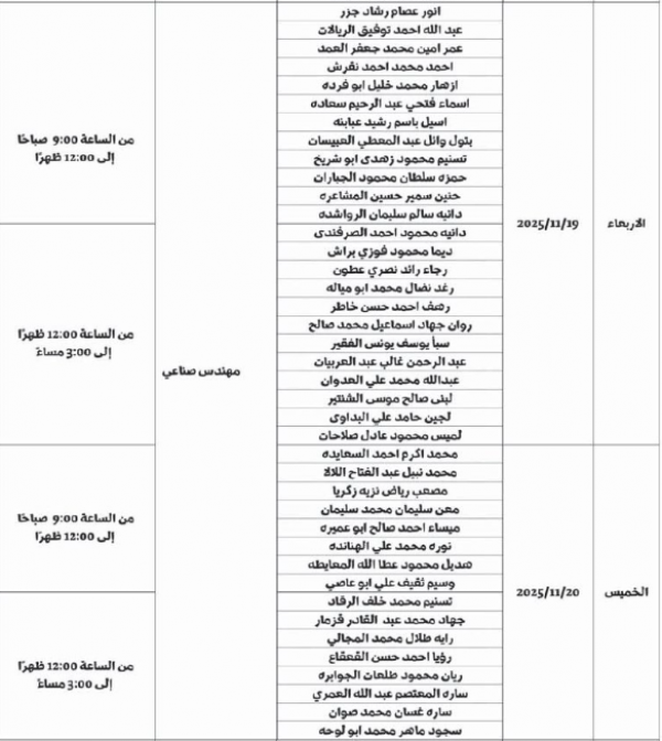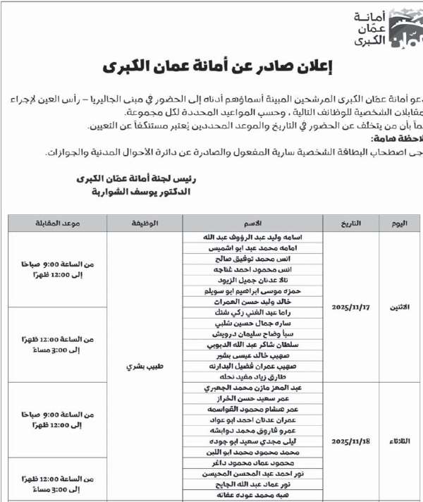 نيروز الإخبارية : دعت وزارات ومؤسسات حكومية، اليوم الثلاثاء، التالية أسماؤهم لإجراء المقابلات الشخصية.