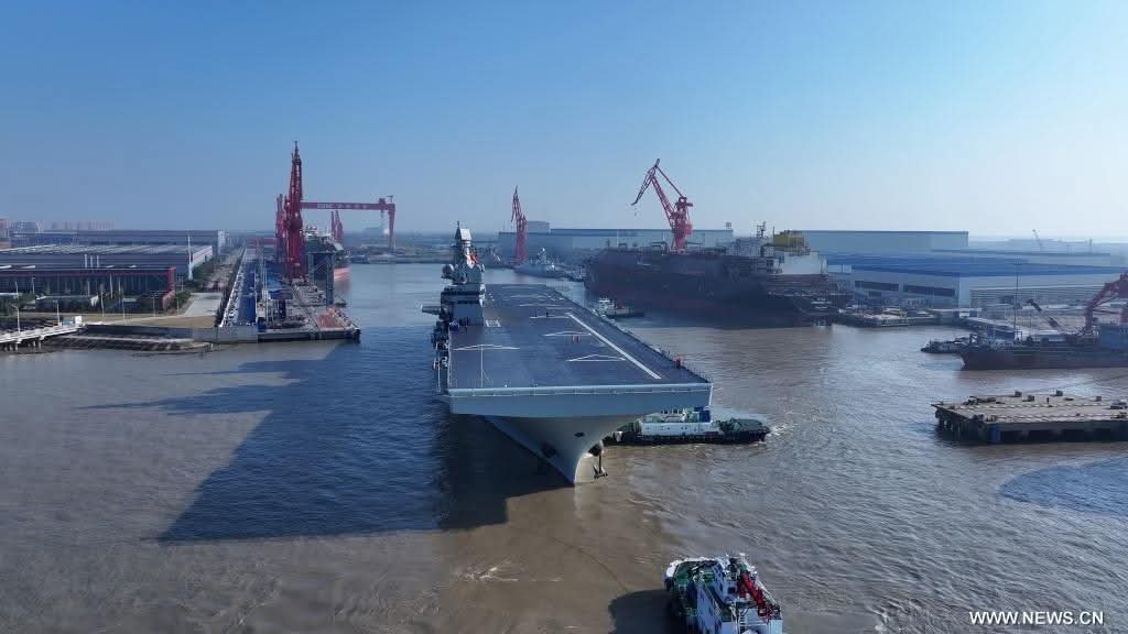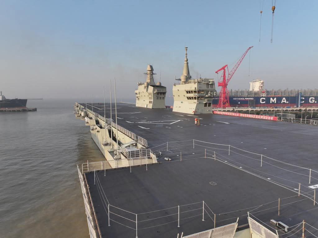 "سيتشوان"، أول سفينة هجومية برمائية من طراز "076" تابعة للقوات البحرية لجيش التحرير الشعبي الصيني تغادر مرسى مصنع من بلدية شانغهاي بشرقي الصين، لتجري أولى تجاربها البحرية.