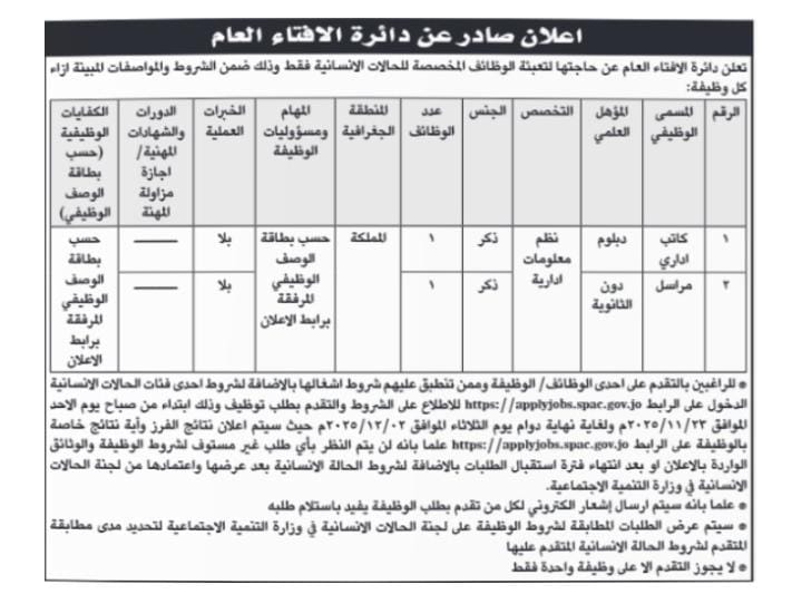553788 اعلان هام للأردنيين حاملي الشهادات الجامعية ..وظائف حكومية شاغرة - تفاصيل :: وكالة نيروز الاخبارية