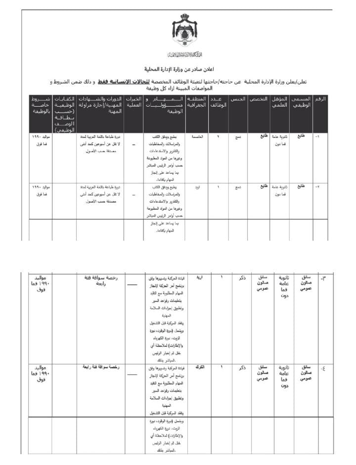 أعلنت وزارة الادارة المحلية، اليوم الاحد، عن حاجتها لتعبئة وظائف شاغرة.
