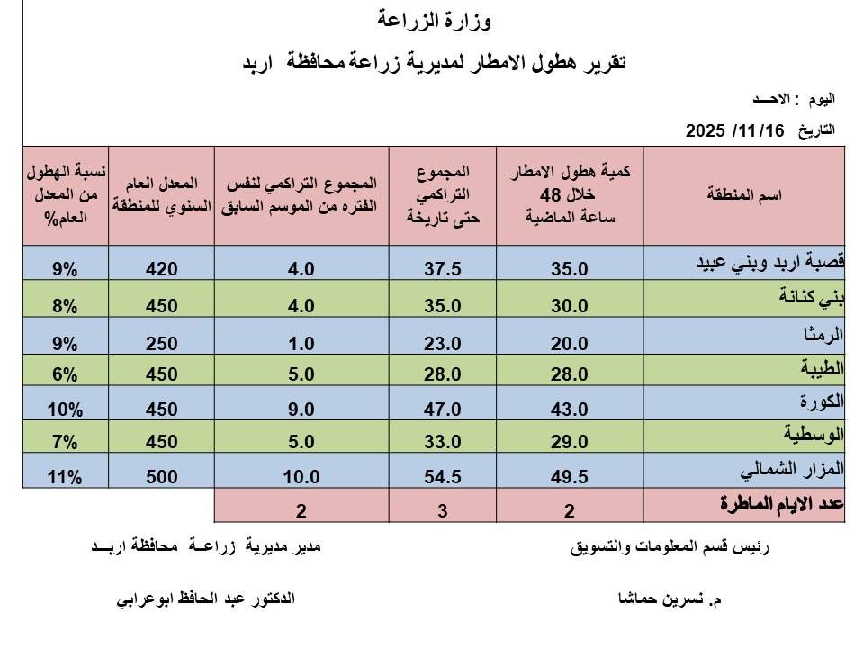 في إربد وبني عبيد، كان الهطول الأكثر حضورًا،