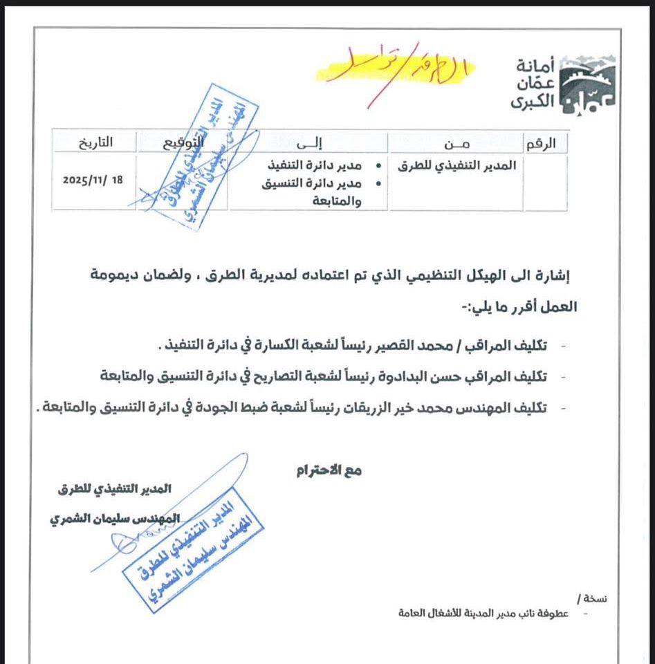 "يتقدّم الأستاذ عمر نواف الزبن بالتهنئة والتبريك للأخ العزيز الأستاذ حسن رضا البداوي (أبو زيد) بمناسبة ترفيعه رئيساً لشعبة التصاريح في دائرة التنسيق والمتابعة في أمانة عمّان."