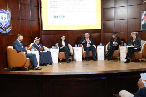 سعيد الظاهري مدير مركز الدراسات المستقبلية جامعة دبي ، وأمل دمشقي المدير الإقليمي - منطقة الشرق الأوسط وشمال أفريقيا وتركيا، ورياض حمزة رئيس الجامعة الملكية للبنات ، وإيمان مجاهد مساعدة نائب الرئيس للتحول الرقمي، رئيسة قسم الاستراتيجية والمعرفة بالجامعة الأمريكية بالقاهرة ، وجوردان سرور مساعد عميد الموارد التعليمية والابتكار الجامعة اللبنانية الأمريكية.