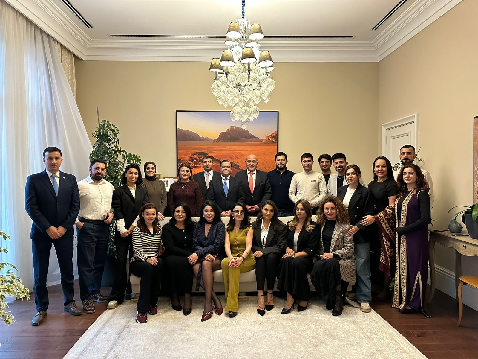 وعلى هامش الزيارة، استضاف السفير الأردني في باكو عمر النهار لقاء جمع أمين عام الوزارة بعدد من صناع المحتوى السياحي في أذربيجان، حيث قدم الخضير إيجازاً حول المنتج السياحي الأردني وما تتميز به المملكة من مواقع أثرية وسياحية متنوعة وجاذبة.