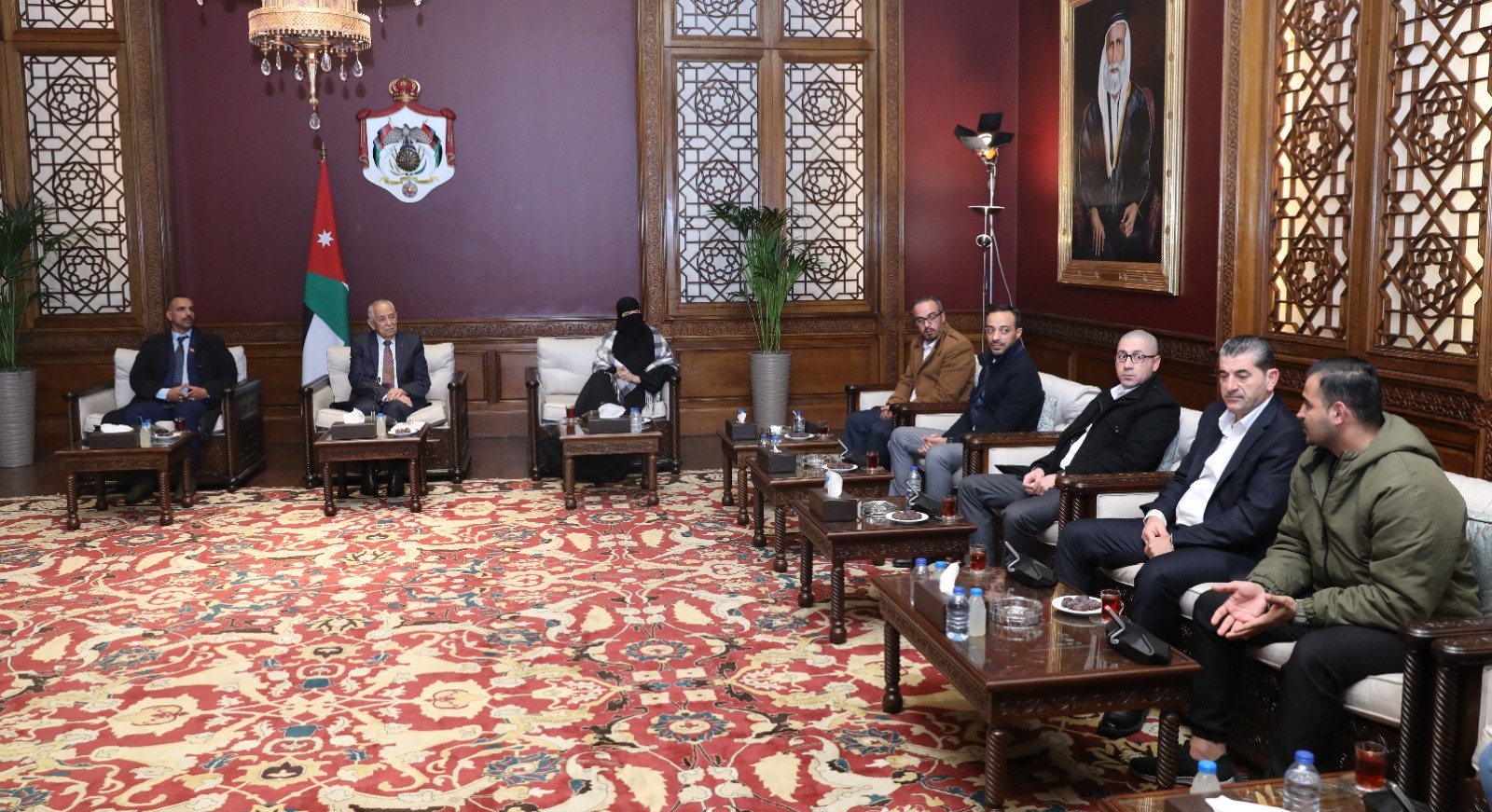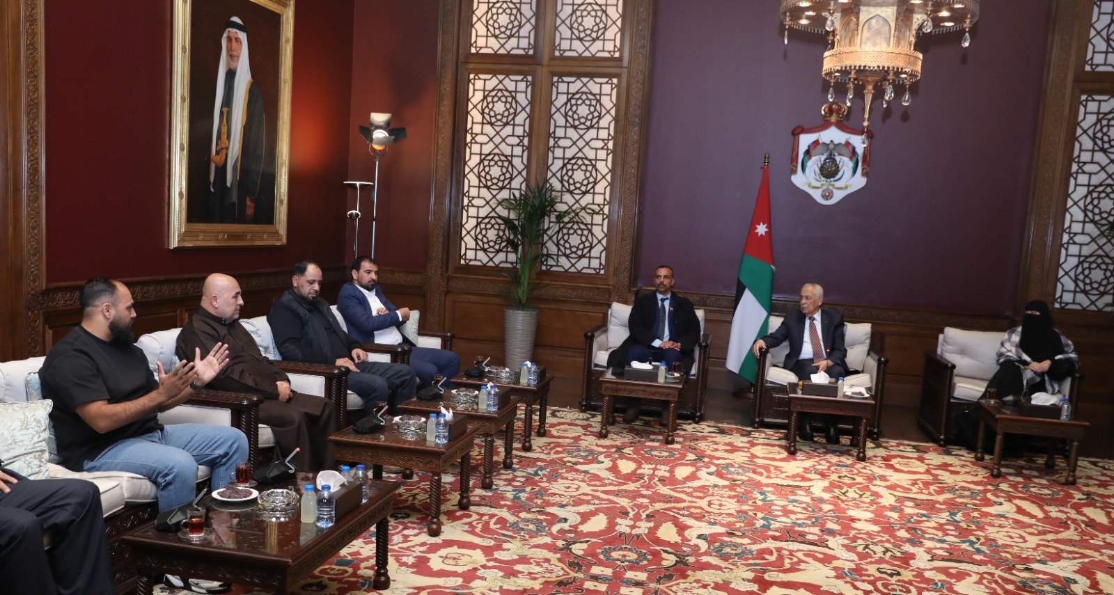 عمان : التقى رئيس الديوان الملكي الهاشمي يوسف حسن العيسوي، اليوم الاثنين، في الديوان الملكي الهاشمي، وفدا من جمعية رابطة النوابلسة في السلط، ووفدا من أعضاء الهيئتين الإدارية والفنية لنادي أبطال استحواذ العقبة ونادي أكاديمية جي أكس أكشن لفنون القتال والكيك بوكسينغ، في لقاءين منفصلين.