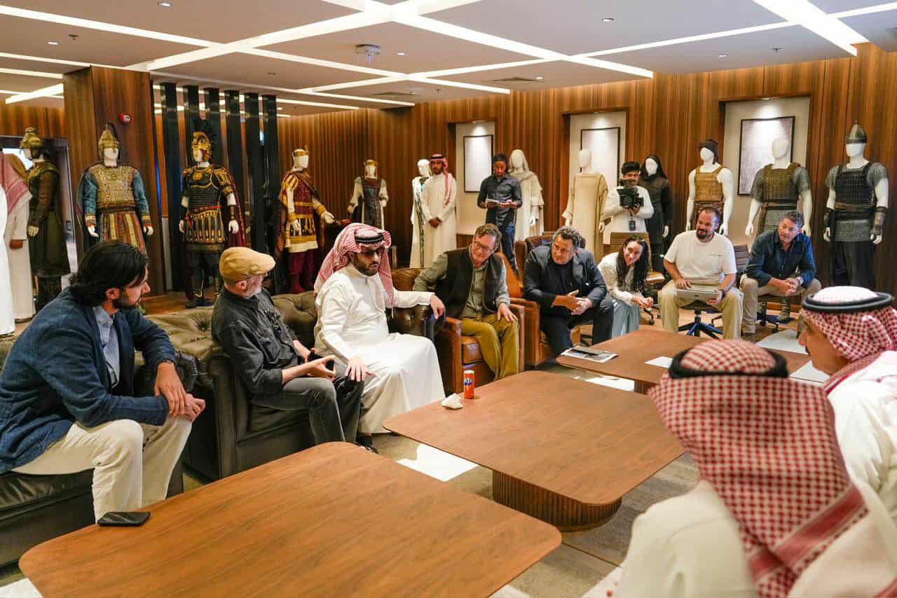 كما التقى معاليه فرق العمل الإبداعية والفنية، وفي مقدمتهم المخرج العالمي أليك ساكاروف، إلى جانب المنتج العالمي ريتشارد شاركي، حيث استعرض الفريق مع معاليه مستجدات مراحل التحضير، وخطط الانتقال إلى المرحلة التالية من العمل، بما يضمن تقديم تجربة سينمائية بمستوى عالمي يعكس قيمة المشروع وأهميته.