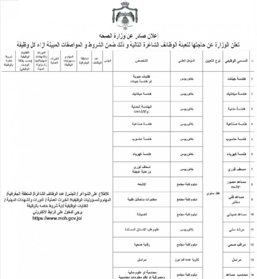 أعلنت مؤسسات حكومية اليوم الأربعاء، عن وظائف شاغرة ضمن شروط محددة.