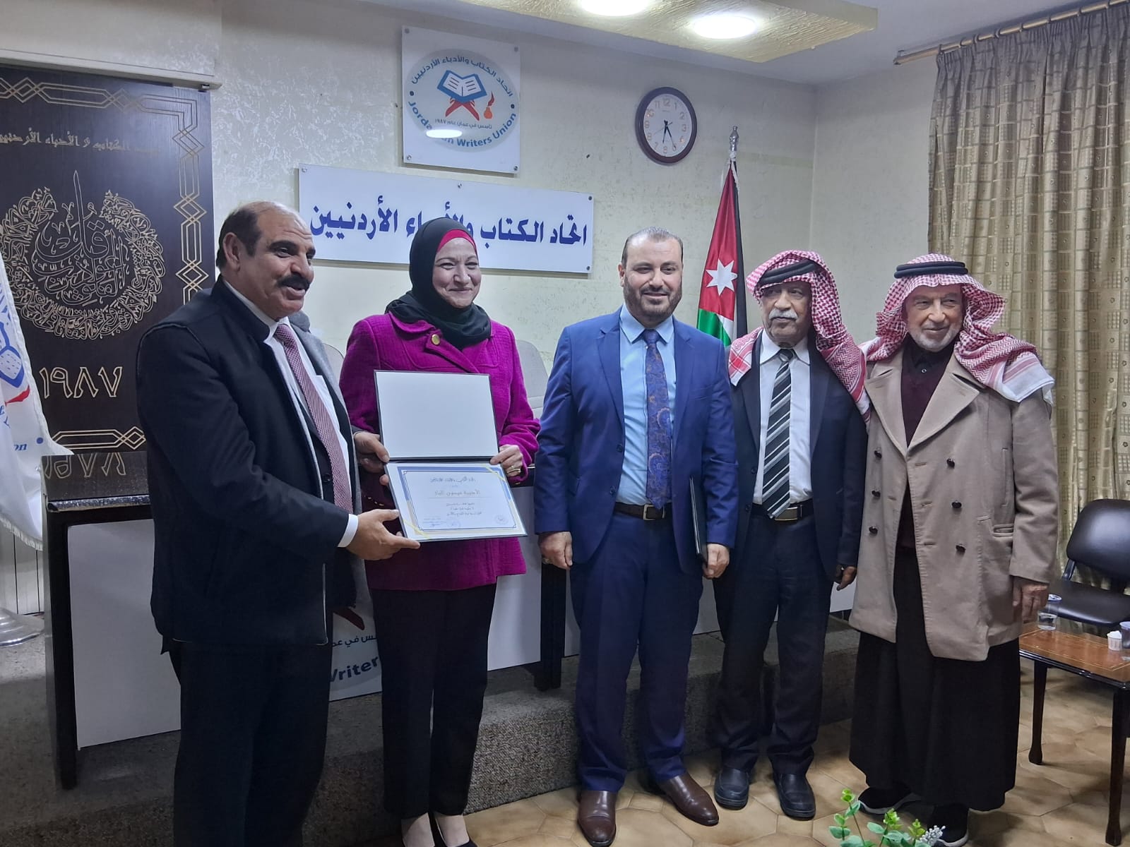 وفي ختام الفعالية، تفضل رئيس الاتحاد الأستاذ عليان العدوان بتكريم المشاركين، مقدرا جهودهم ومثمنا دورهم في إثراء الساحة الثقافية، مؤكدا استمرار الاتحاد في تنظيم مثل هذه الأنشطة التي ترفد الحركة الأدبية والفكرية في الأردن.وتم التقاط الصور التذكارية لهذه المحاضرة
