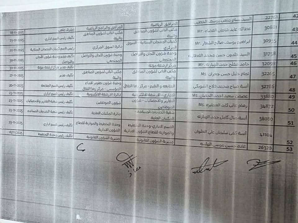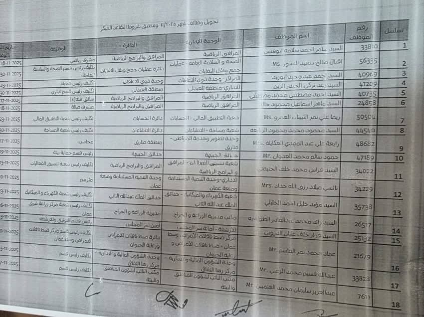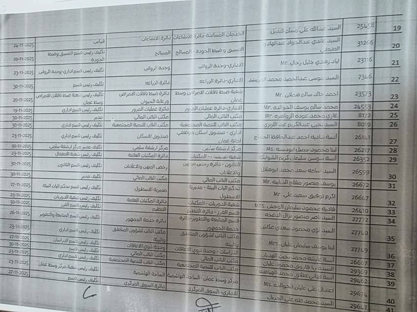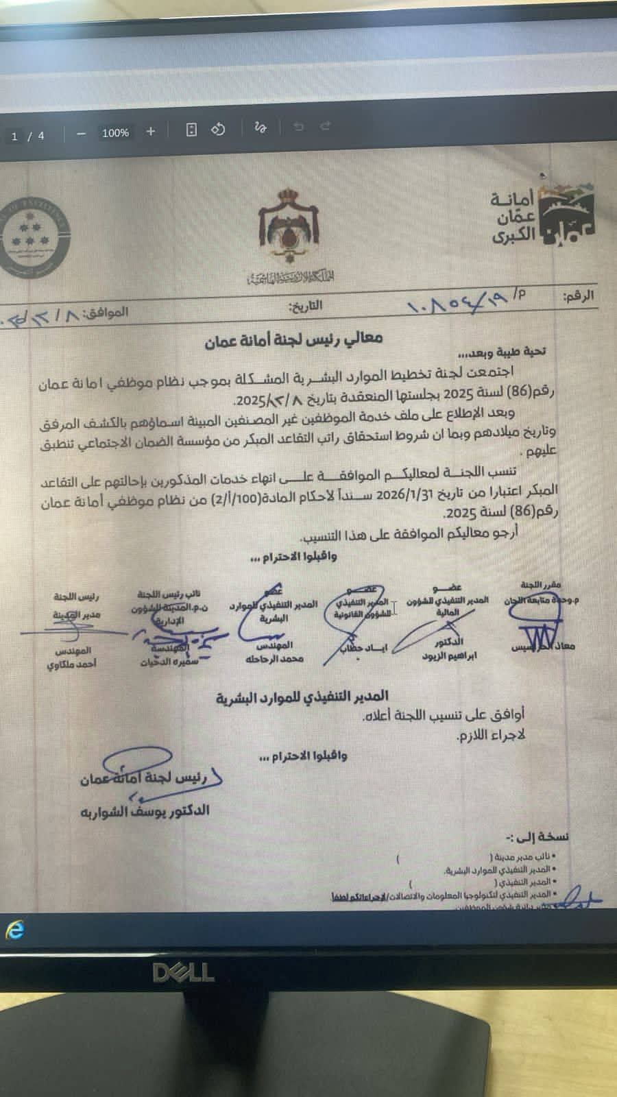 قرر  يوسف الشواربة رئيس لجنة أمانة عمان الكبرى إحالة 53 موظفا إلى التقاعد المبكر اعتبارا من تاريخ 31/1/2026.