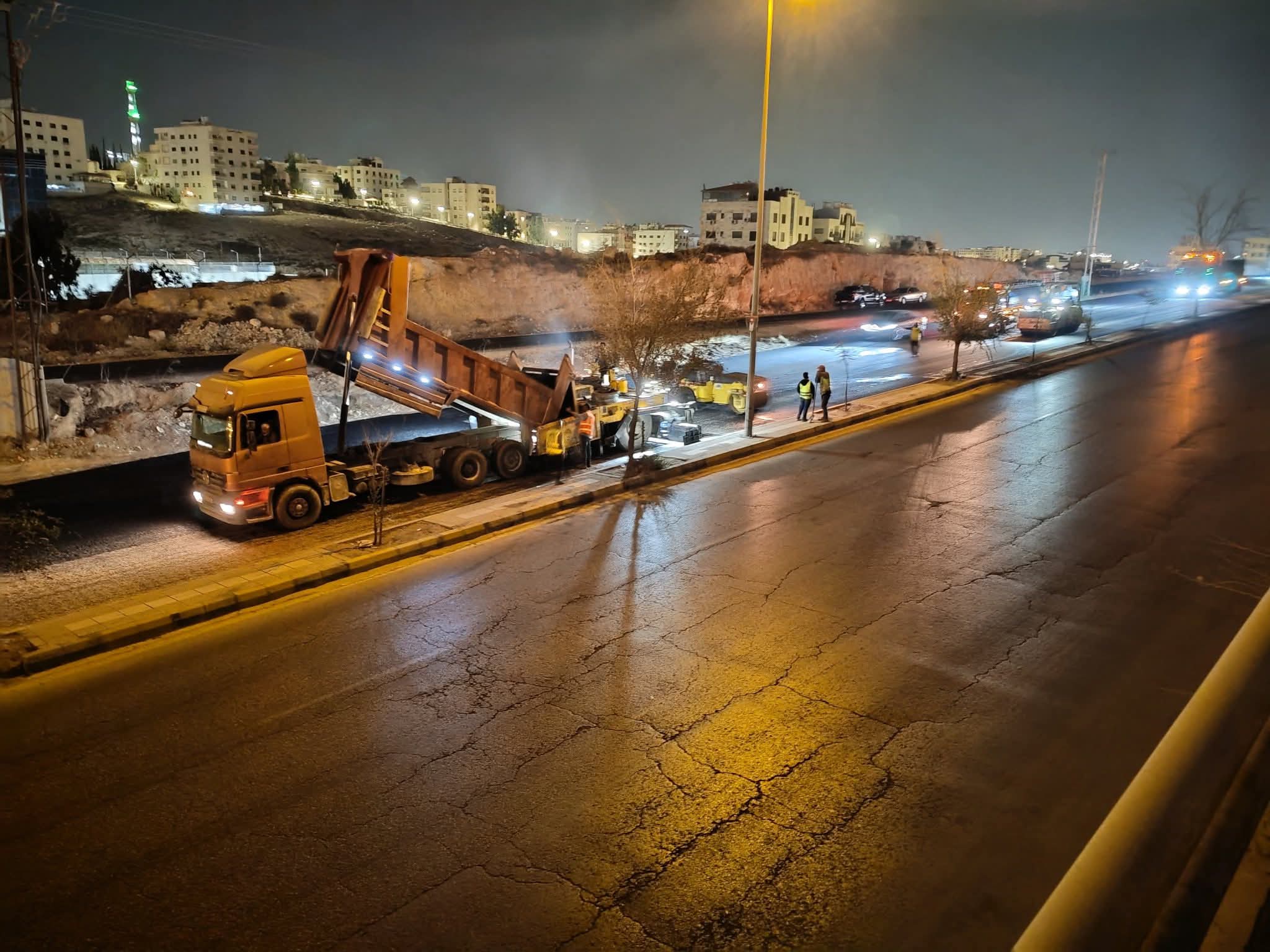 وعملت الأمانة على تنفيذ أعمال التعبيد الليلي، بمساحة  675000 متر مربع، لعدد من الشوارع الرئيسية الحيوية، بهدف عدم إعاقة الحركة المرورية نهاراً، والتي شملت شارع الملكة رانيا، المدينة المنورة، وصفي التل، الملكة علياء، الملكة زين الشرف، الاميرة عالية، زهران، الفروسية في منطقة النصر، اليرموك من نفق السكافي باتجاه جسر النشا، الحرية مع جسر الجمرك بالاتجاهين، كفرعانة جنوب عمان، الملك عبدالله الثاني نفق خلدا و نفق سعيد خير المدينة الطبية الطبية، اضافة الى شارع عامر بن مالك، القدس، و نفق الرنتيسي، شارع خليل السالم، دوار ماركا، دوار عبدون مع لوبات الرابع، شارع النوري الحديد في منطقة القويسمة، وشارع عمان سحاب بالاتجاه القادم من سحاب باتجاه نفق مرسيدس.