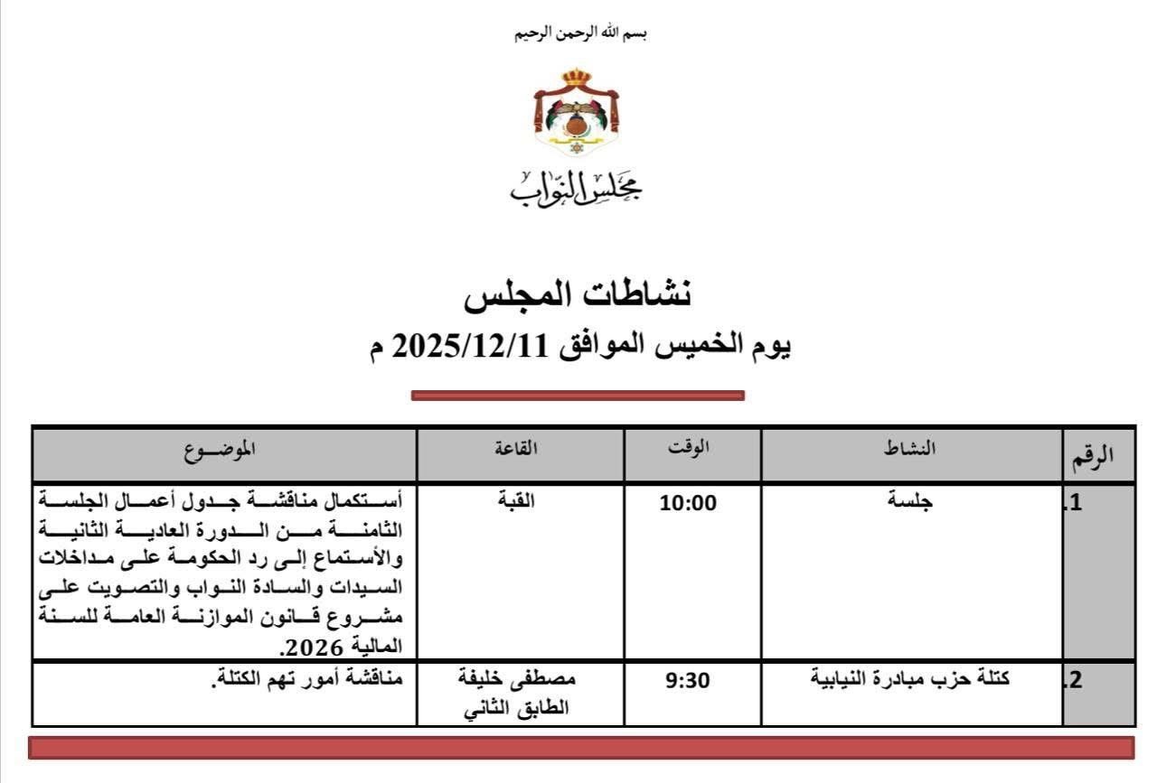 وبعد إقرار مشروع القانون، تشرع اللجنة المالية في مجلس الأعيان بمُناقشة "موازنة 2026"، لترفع توصياتها إلى مجلس الأعيان، من أجل إقراره، ومن ثم توشيحه بالإرادة الملكية السامية ونشره في الجريدة الرسمية.