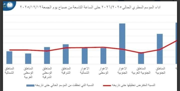 ويبيّن الرسم البياني المرفق وضع الموسم المطري حتى الساعة التاسعة من صباح يوم الجمعة
