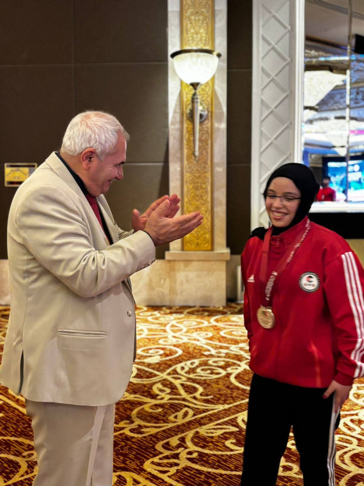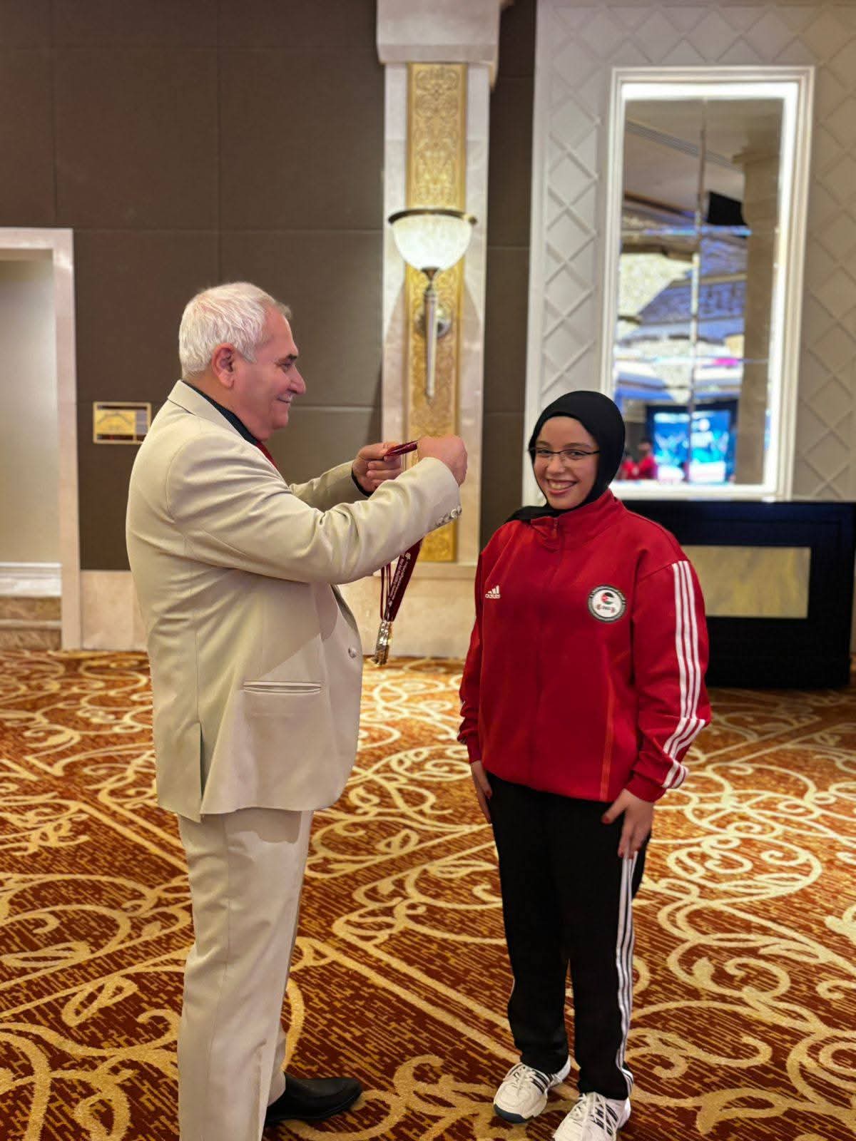 كما أضافت إلى رصيدها ميدالية برونزية في رفعة الخطف ضمن البطولة العربية – فئة الناشئين.