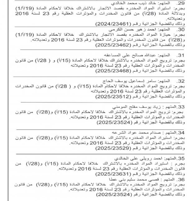 نيروز الإخبارية : أمهل رئيس محكمة امن الدولة العقيد القاضي العسكري حسان خليف العودات 36 مطلوبًا مدة 10 أيام لتسليم أنفسهم إلى السلطات القضائية المختصة، لمحاكمة كل منهم عن التهم المسندة إليه.