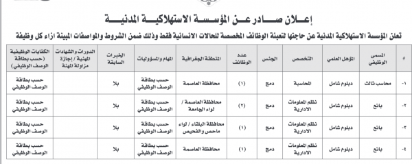وتاليًا الوظائف الشاغرة وتفاصيل التقديم إليها: