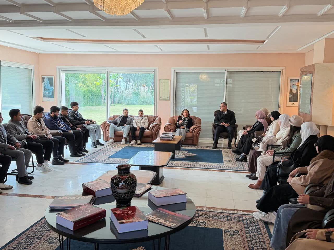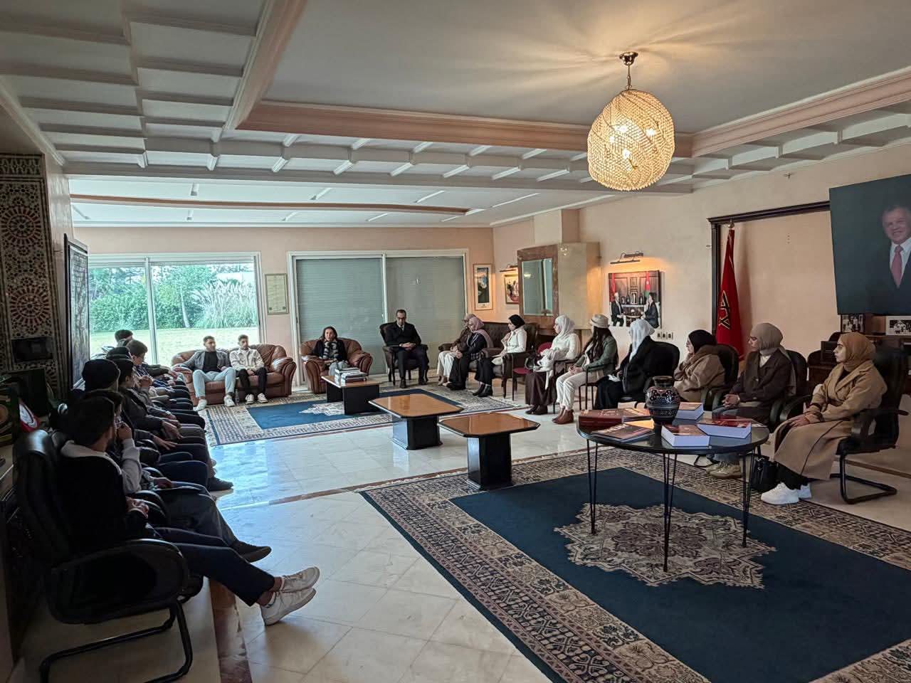 ويأتي هذا اللقاء في سياق النهج الذي تتبعه السفارة الأردنية بالرباط لتعزيز التواصل مع الجالية الطلابية الأردنية، وتأكيد الدور المحوري للدبلوماسية الأردنية في رعاية أبنائها في الخارج ودعم مسيرتهم التعليمية.