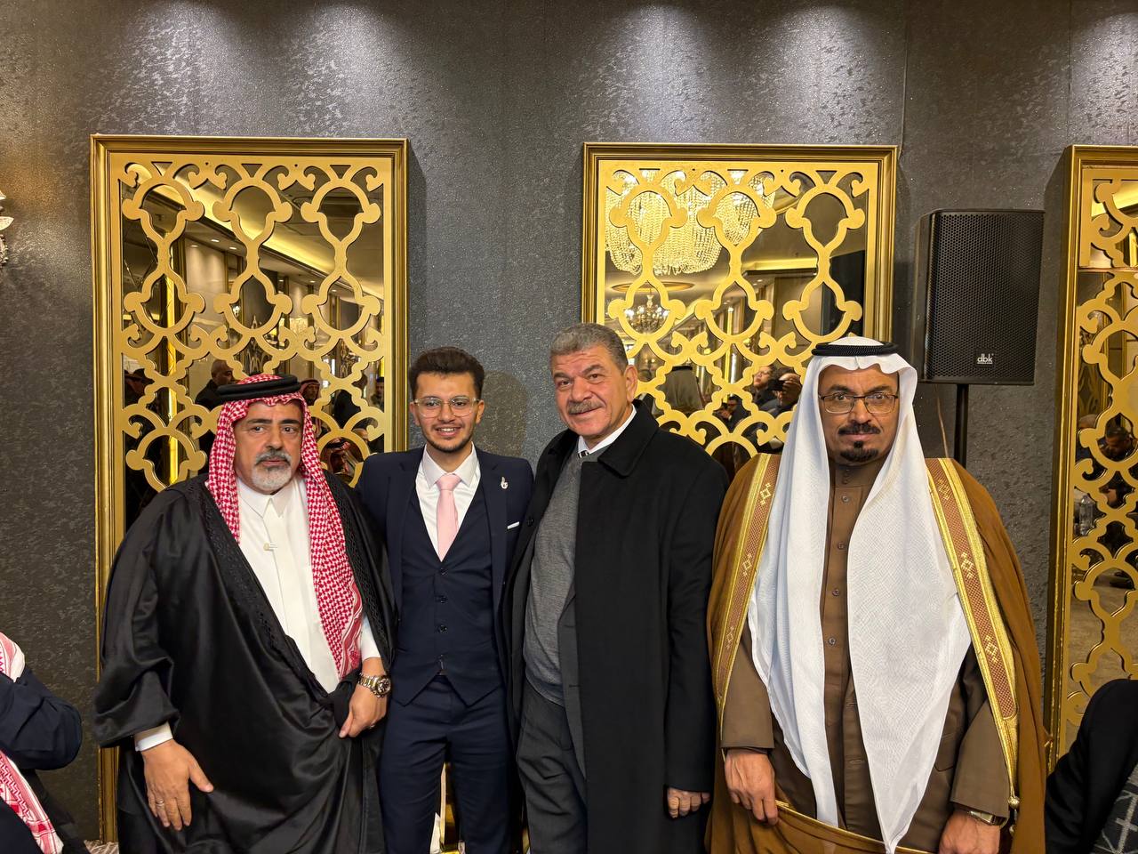 بدوره، عبّر والد العريس المحامي عاطف الصوري عن خالص شكره وتقديره لعشيرة آل أبو حويلة على حفاوة الاستقبال وكرم الضيافة وحسن الترحيب، مثمنًا حضور الجاهة الكريمة والقامات الوطنية والعشائرية التي شاركت هذه المناسبة المباركة. ورفع الصوري أسمى التهاني والتبريكات للعروسين، داعيًا الله أن يبارك لهما ويبارك عليهما وأن يجمع بينهما على الخير والمحبة، وأن يرزقهما حياة زوجية مليئة بالسعادة والطمأنينة والتفاهم، وأن يديم على العائلتين الألفة والمودة والخير الدائم.