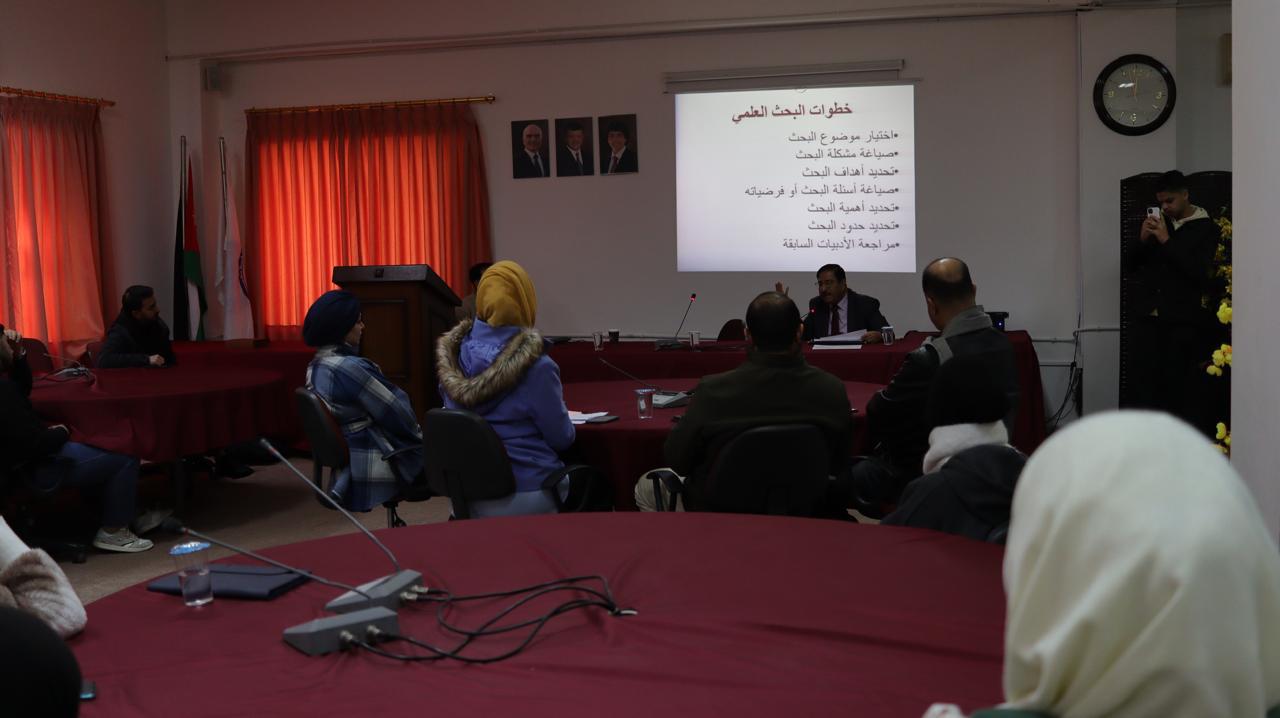 نظّمت دائرة المكتبة ومصادر المعلومات، وبالتعاون مع عمادة كلية الآداب والعلوم التربوية، محاضرة علمية بعنوان «أساسيات البحث العلمي – دور المكتبات في خدمة الباحثين»، قدّمها الأستاذ الدكتور ربحي عليان، وذلك بحضور أكاديمي وبمشاركة من الطلبة والباحثين.