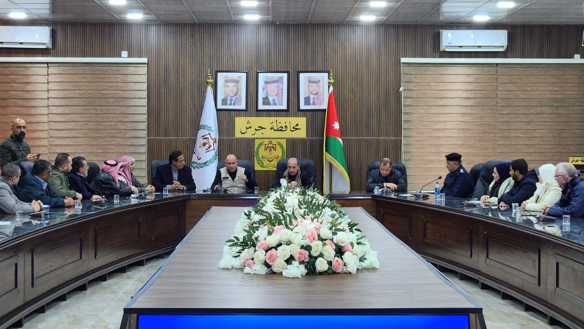 وكان في استقبال الوزير خلال زيارته لدار محافظة جرش محافظ جرش الدكتور مالك خريسات ورئيس لجنة بلدية جرش الكبرى محمد بني ياسين إلى جانب رؤساء لجان البلديات ومدراء الدوائر الرسمية وممثلي الأجهزة الأمنية.