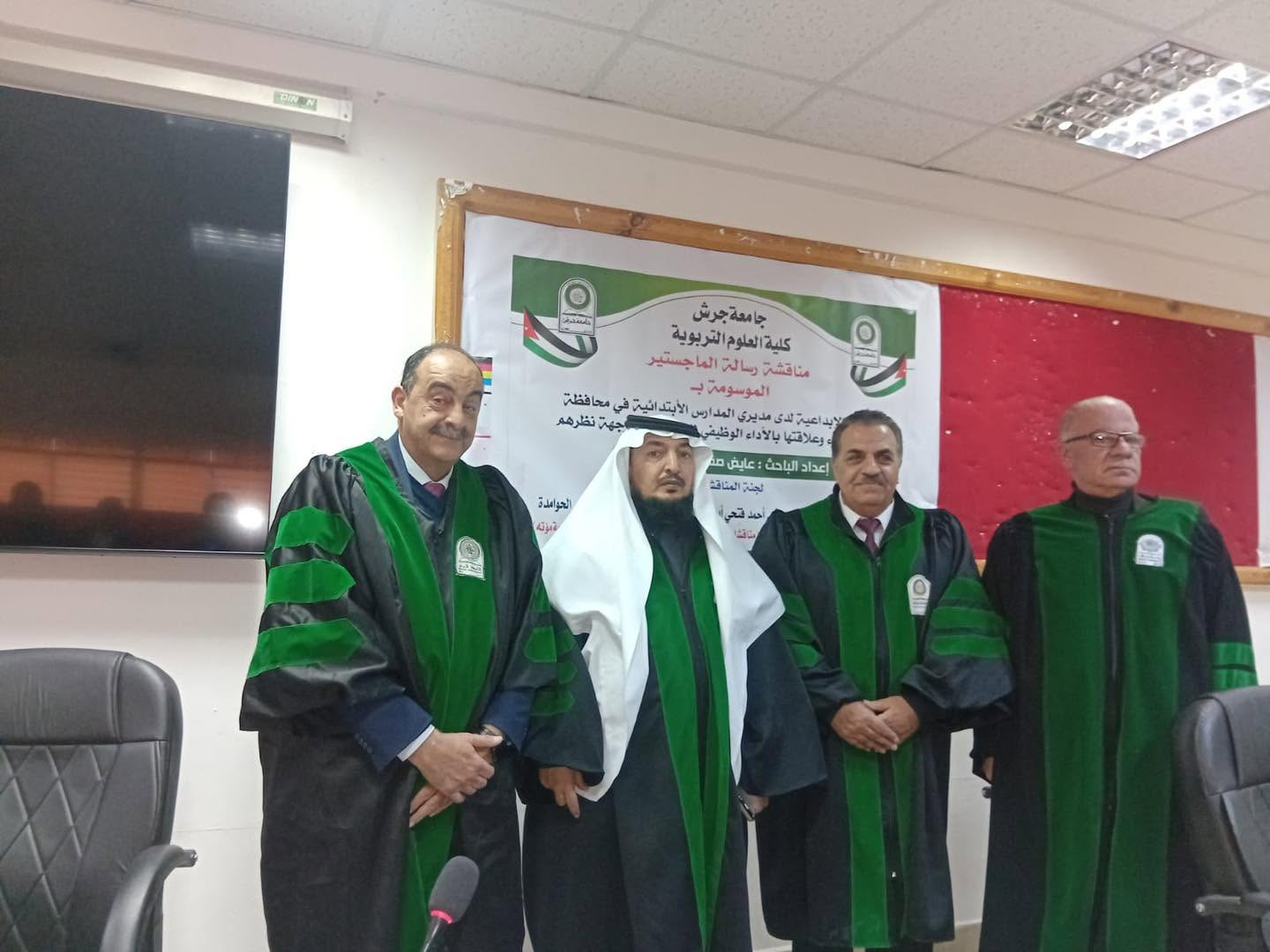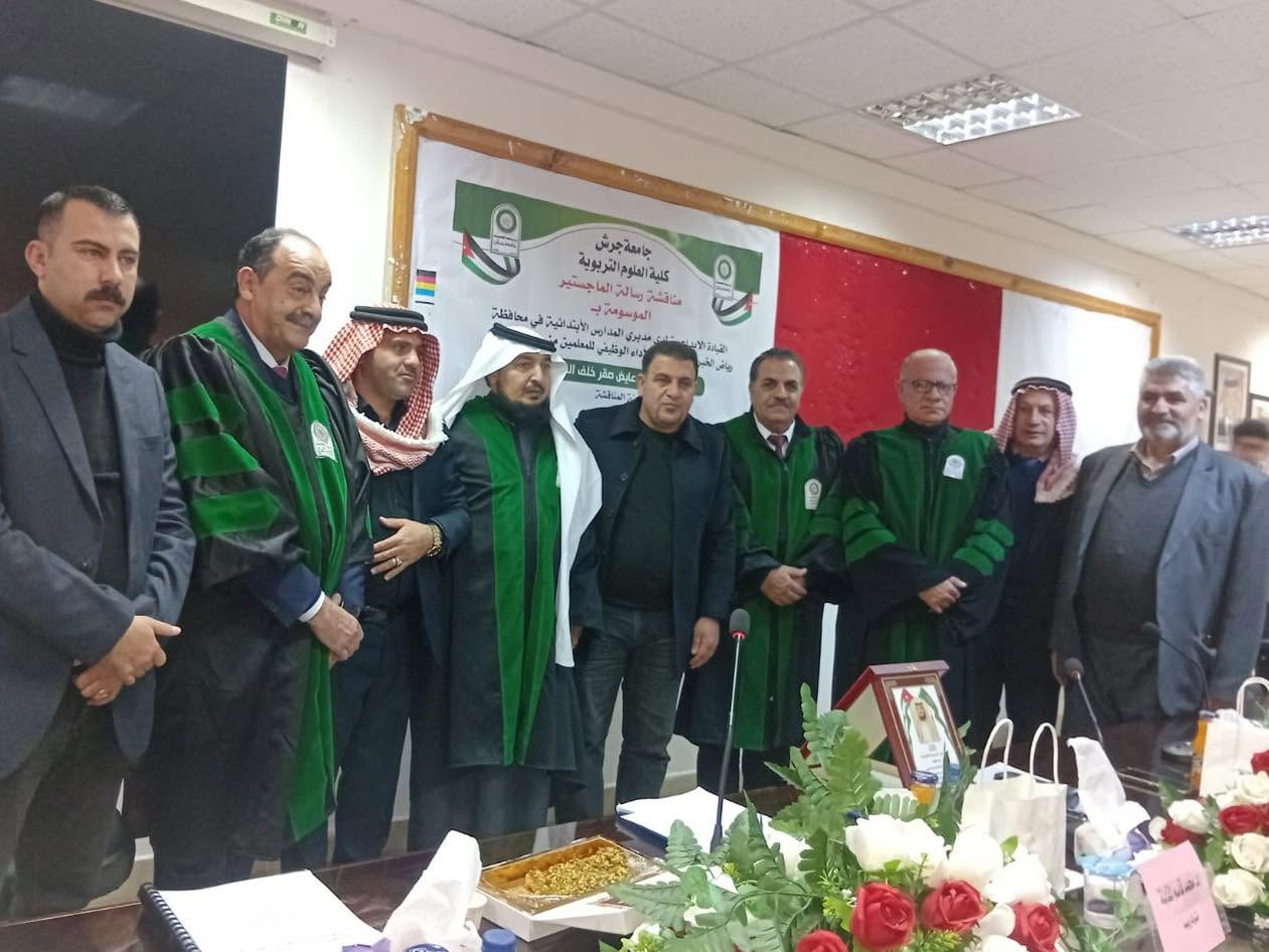 وفي ختام المناقشة أشادت اللجنة بالجهد العلمي الذي بذله الباحث وأهمية الدراسة في تطوير الإدارة التربوية وقررت منحه درجة الماجستير في الإدارة التربوية من كلية العلوم التربوية في جامعة جرش.