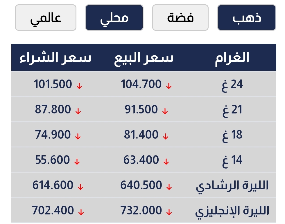 أسعار الذهب المحلية و العالمية