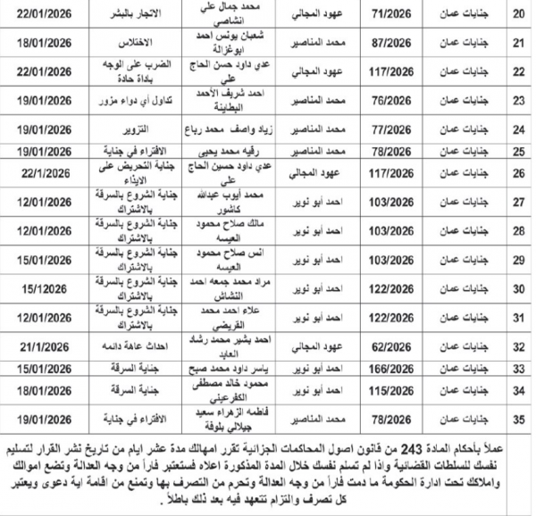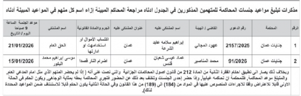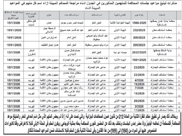 نيروز الإخبارية : صدرت اليوم الاثنين، مذكرات تبليغ عن محاكم جنايات لمتهمين بدعاوى مختلفة لحضور جلساتهم المدرجة مواعديها في البلاغات.