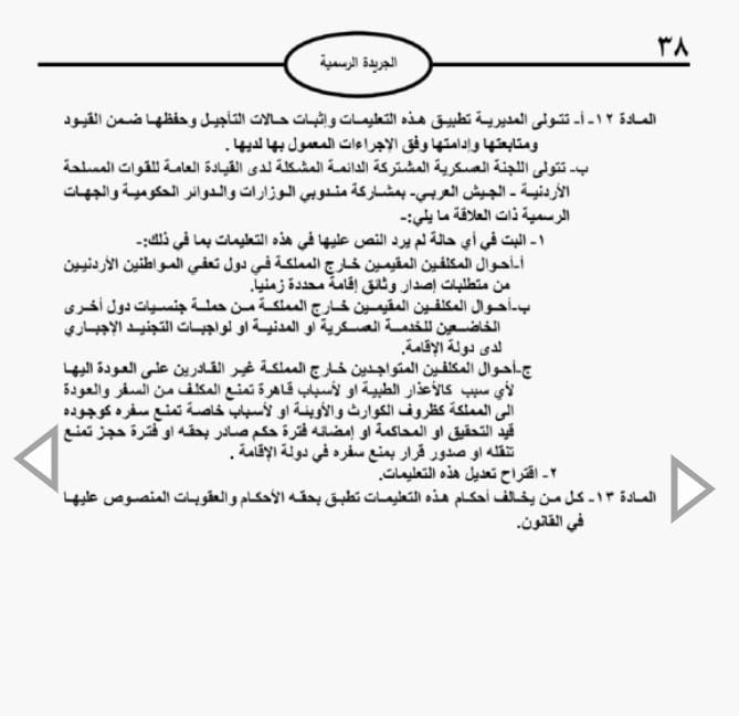 واشتمل العدد على تعليمات أسس وشروط تأجيل خدمة العلم للمكلفين المقيمين خارج المملكة لسنة 2026.