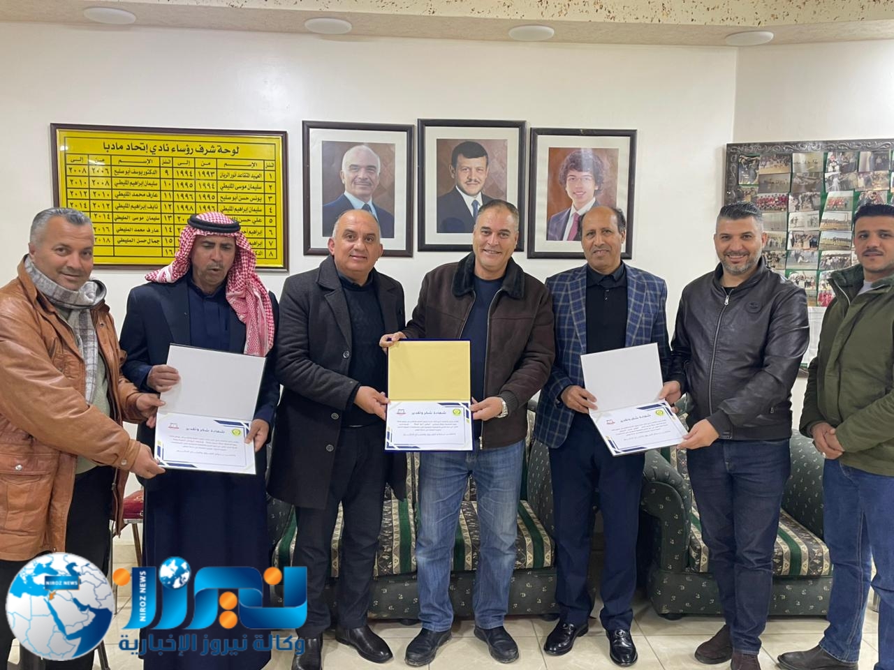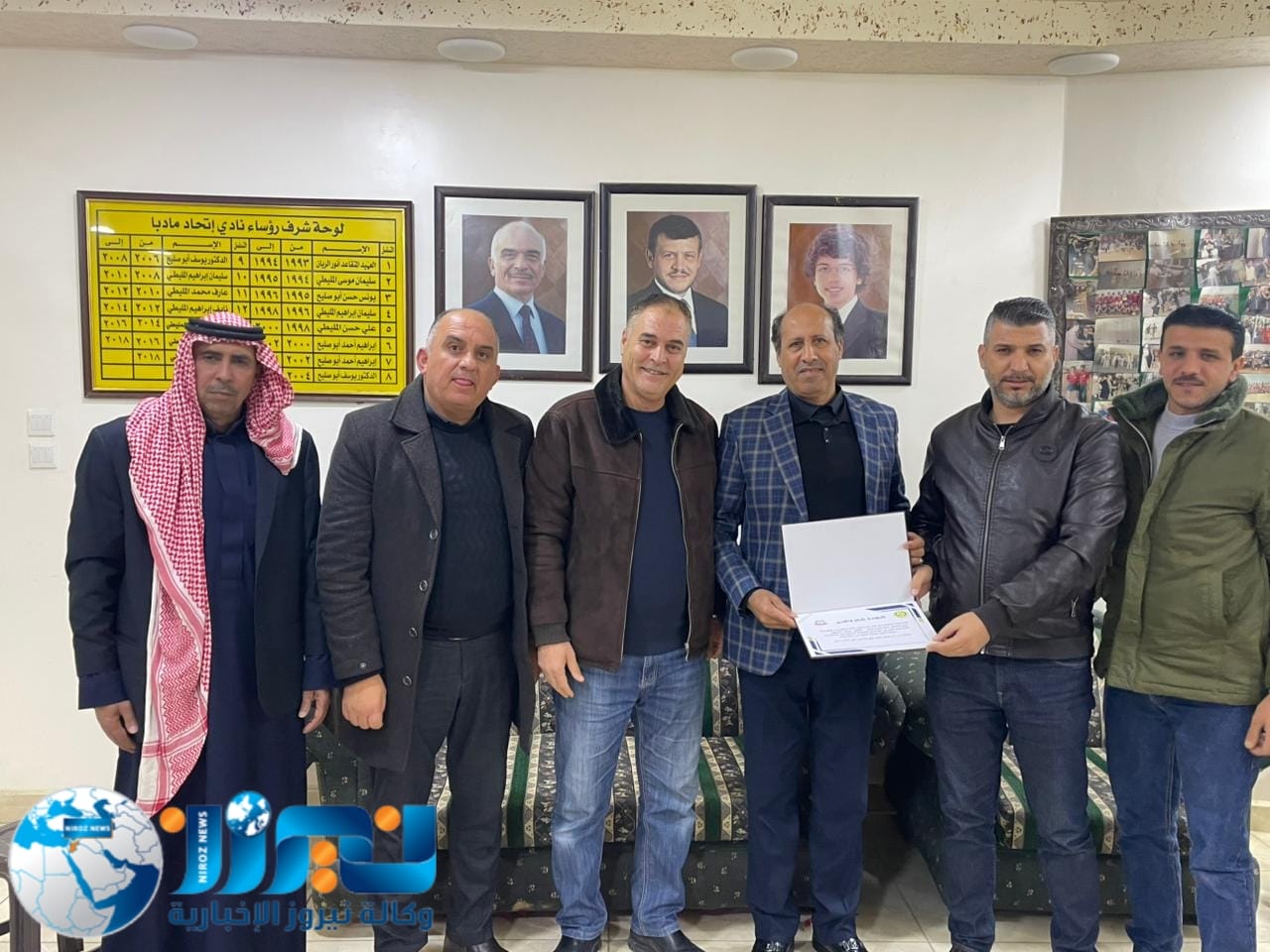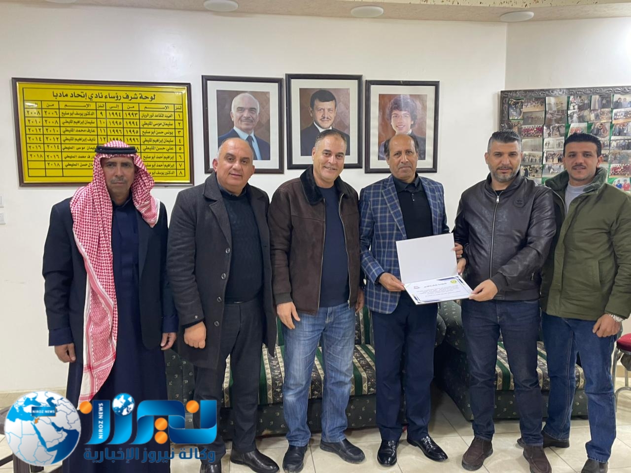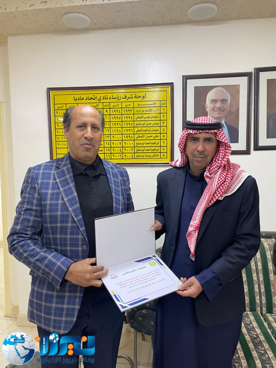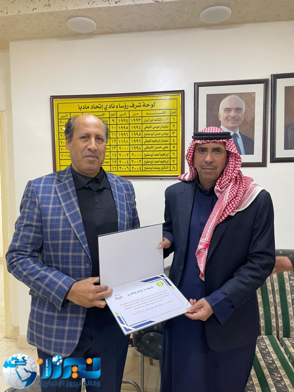 كرّم جمال المليطي، الرئيس الفخري لنادي اتحاد مادبا ومؤسس فريق أهل العزم للدفع الرباعي، ورئيس النادي وليد المليطي، وكالة نيروز الإخبارية ممثلة بالمدير العام الأستاذ خليل سند الجبور، وعضو الوكالة محمد أبو نار، وذلك خلال حفل أُقيم اليوم في مقر النادي بحضور عدد من الأعضاء.